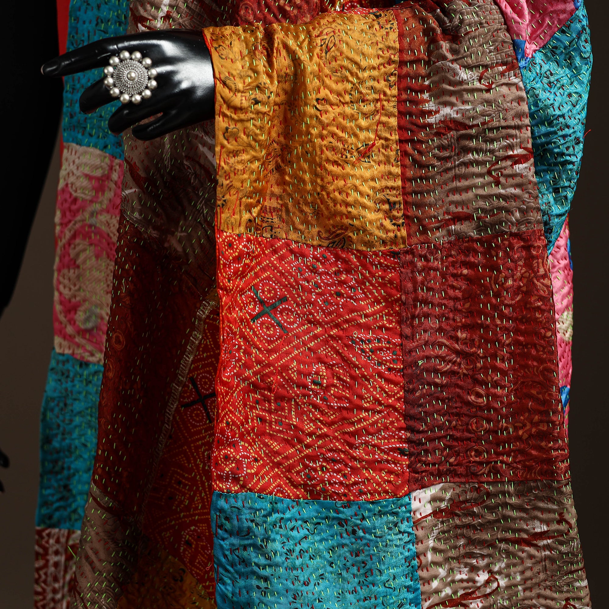 • Multicolor - Bengal Hand Embroidery Patchwork Reversible Silk Kantha Dupatta 21
