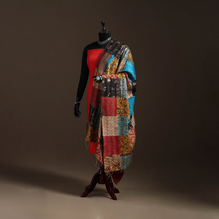 • Bengal Hand Embroidery Patchwork Reversible Silk Kantha Dupatta 23