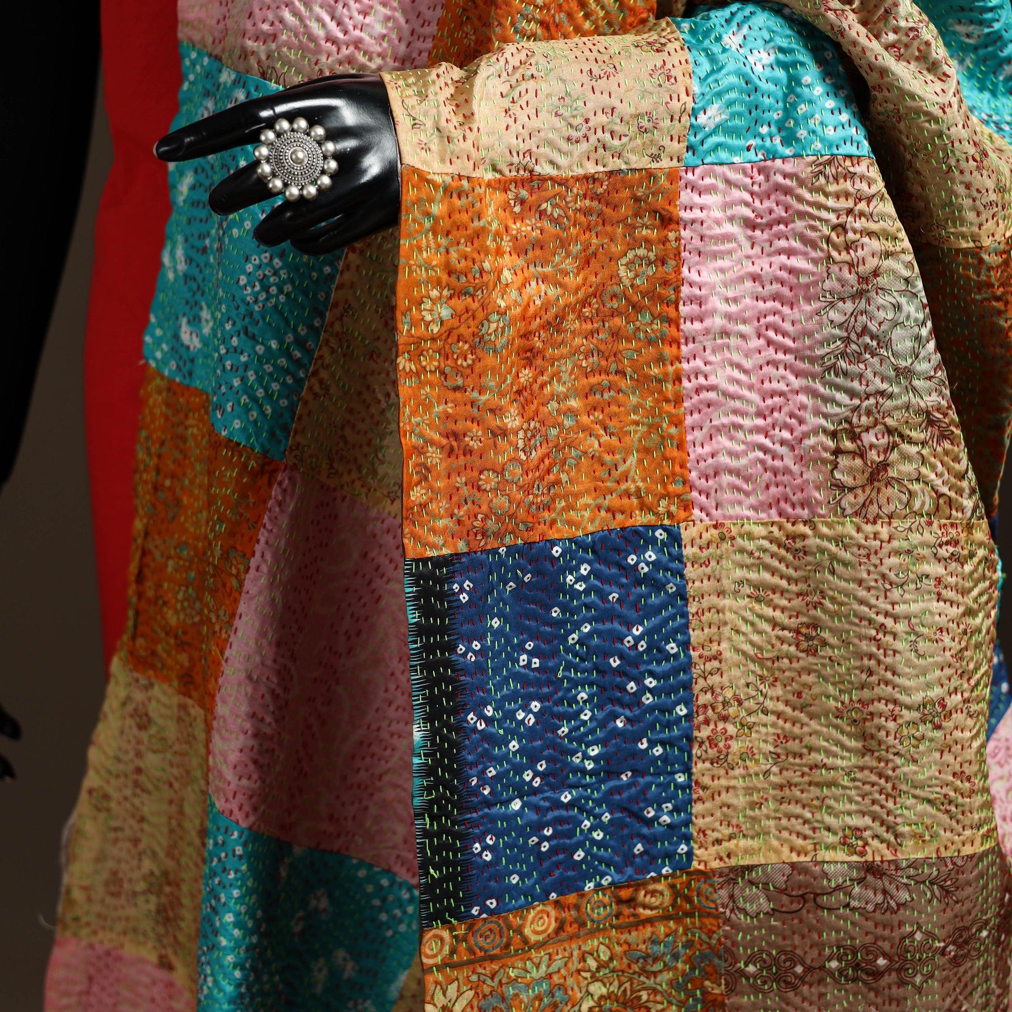 Bengal Hand Embroidery Patchwork Reversible Silk Kantha Dupatta 31