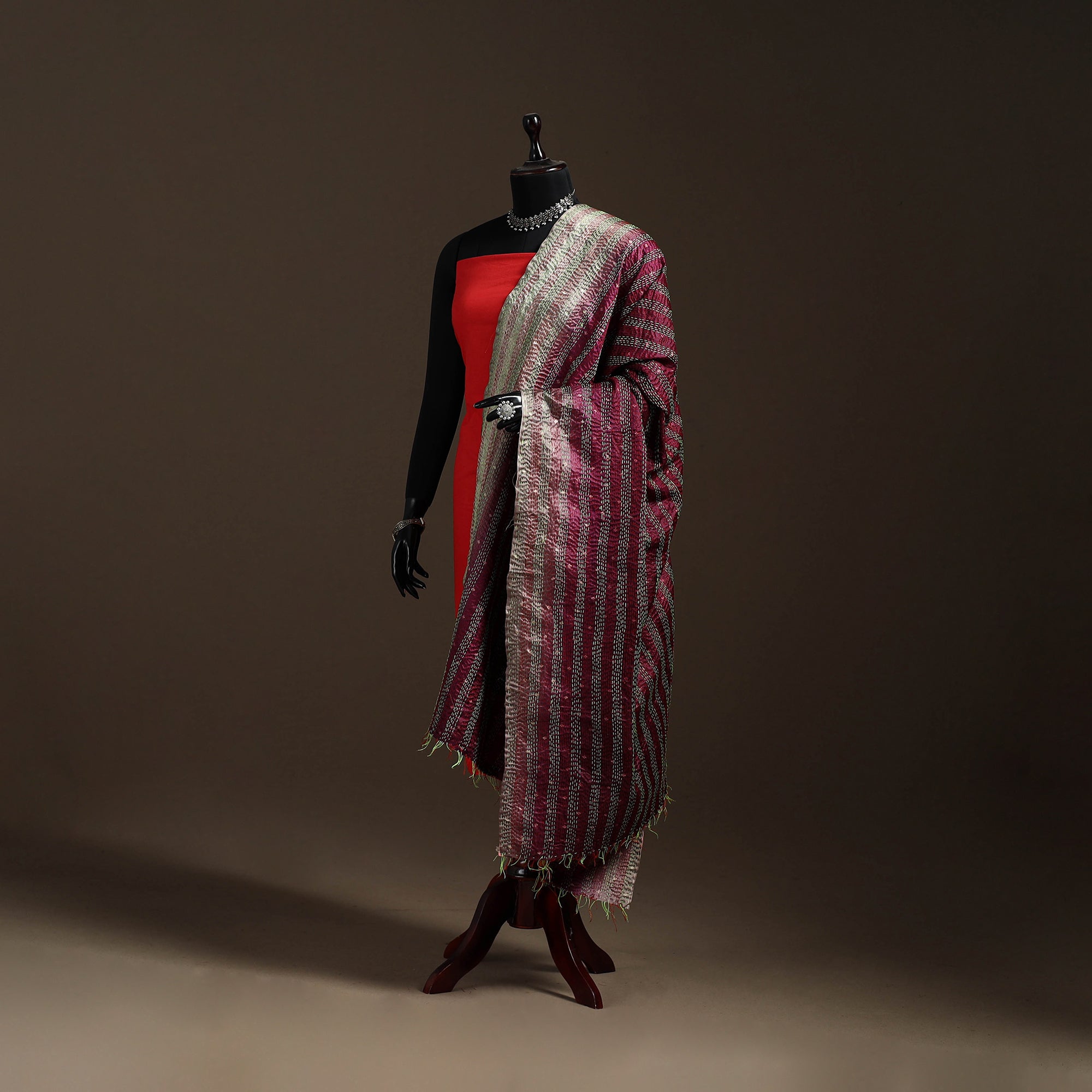 • Bengal Hand Embroidery Patchwork Reversible Silk Kantha Dupatta 31