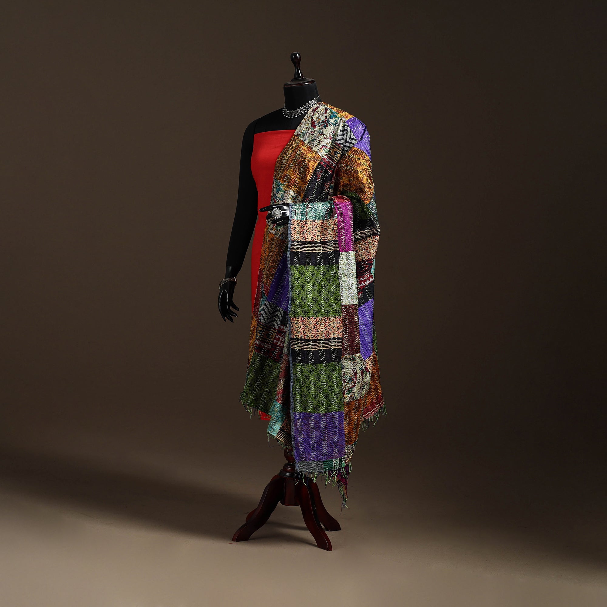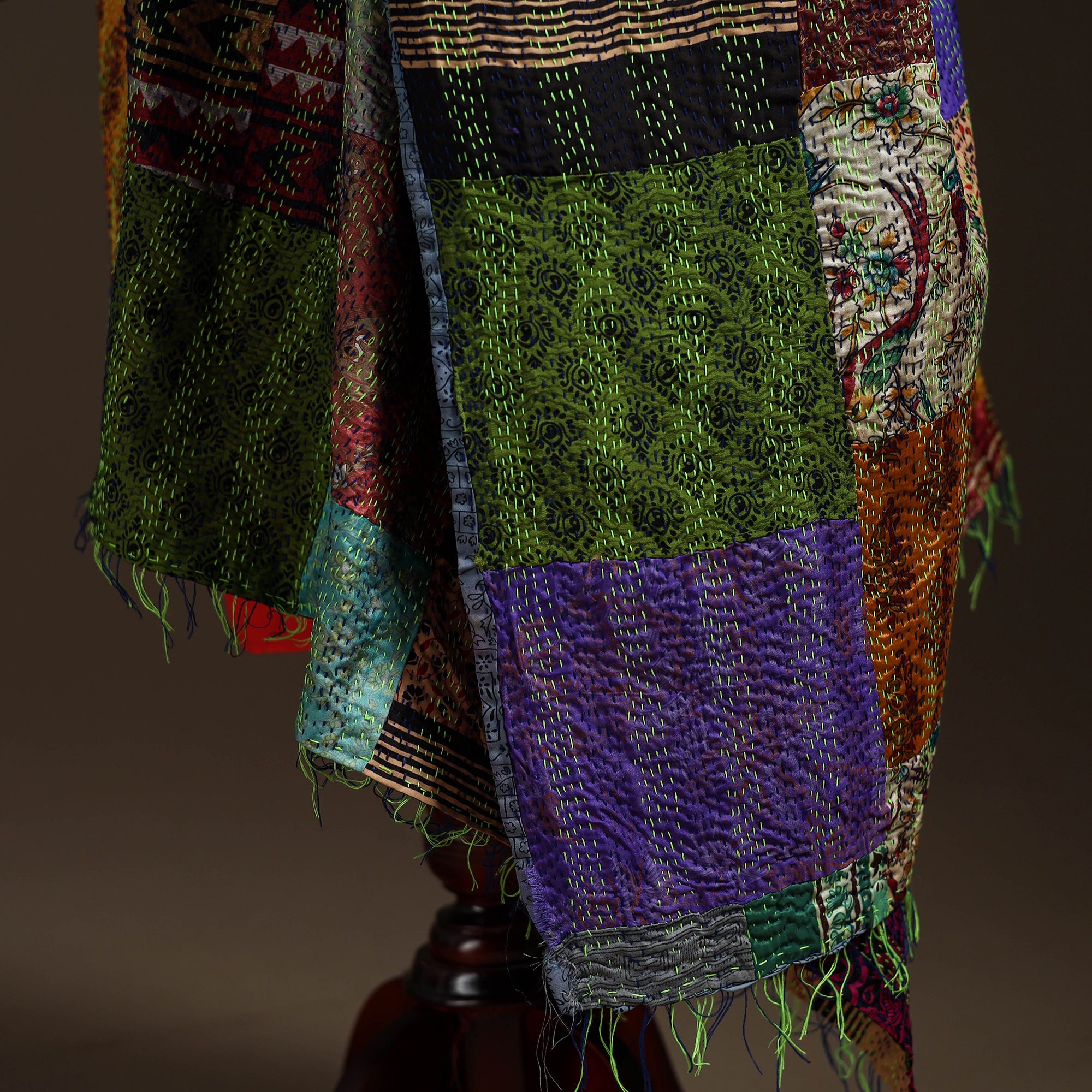Bengal Hand Embroidery Patchwork Reversible Silk Kantha Dupatta 40