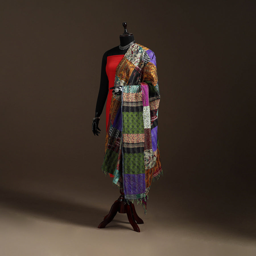• Bengal Hand Embroidery Patchwork Reversible Silk Kantha Dupatta 40