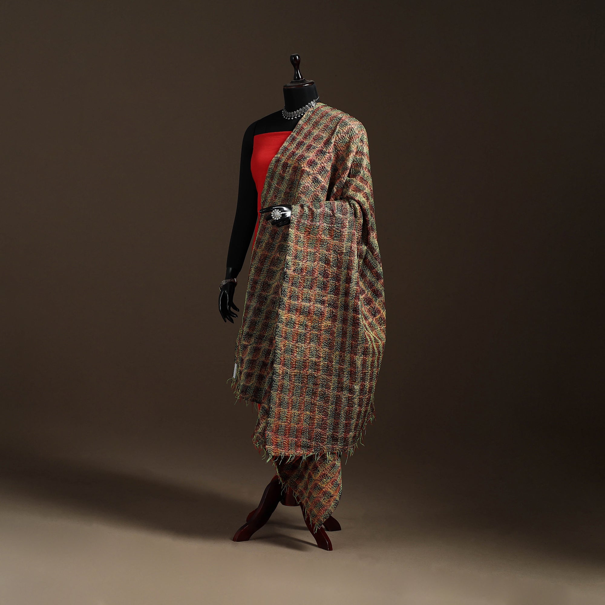 Kantha hand-embroidery patchwork reversible dupatta crafted in art silk. The fine kantha handwork reflect Bengal’s rich heritage, while the reversible design adds versatility. Its patchwork patterns offer a unique charm with a contemporary touch. Perfect for casual wear, this dupatta pairs well with a wide range of outfits.