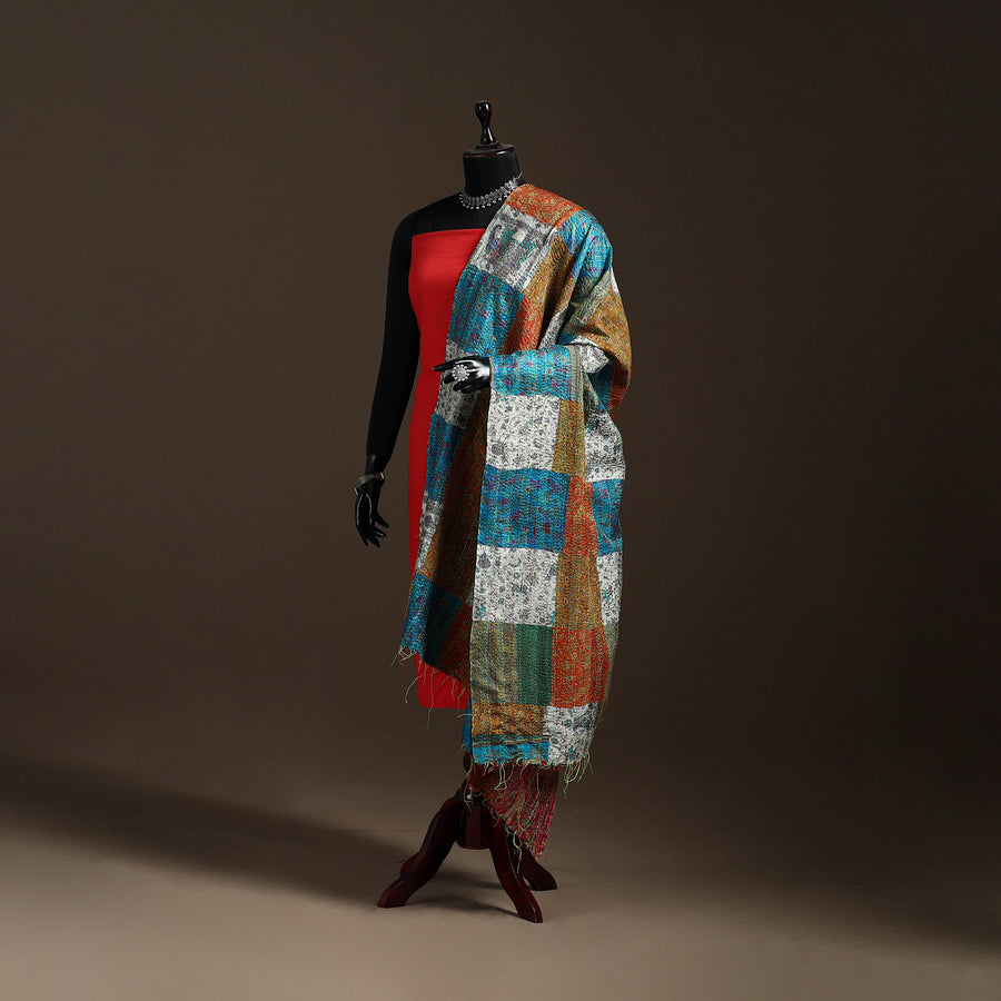 • Bengal Hand Embroidery Patchwork Reversible Silk Kantha Dupatta 63