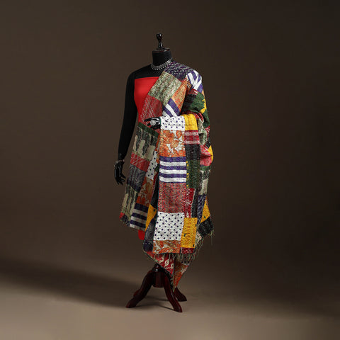 Multicolor - Bengal Hand Embroidery Patchwork Reversible Silk Kantha Dupatta 91