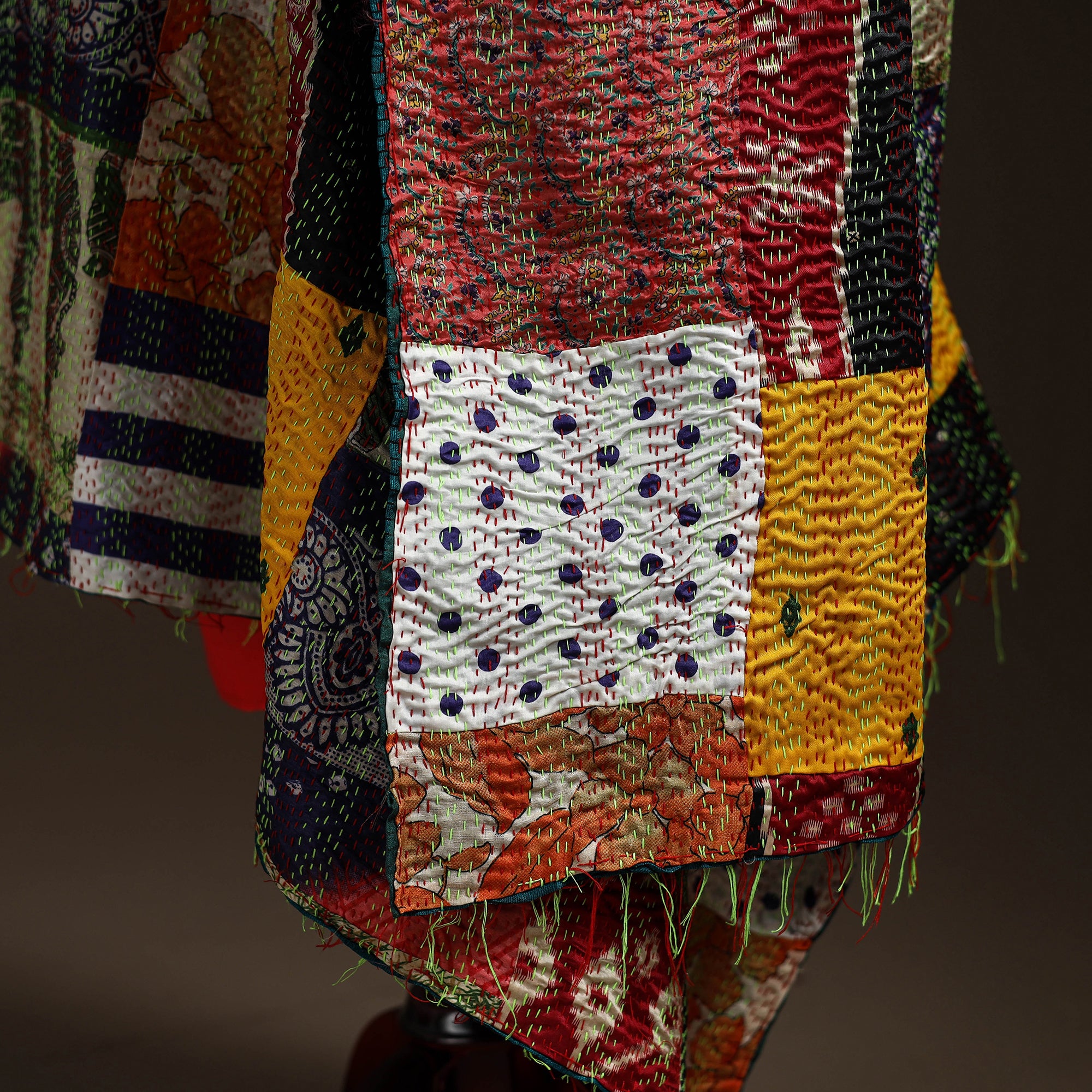 • Multicolor - Bengal Hand Embroidery Patchwork Reversible Silk Kantha Dupatta 91