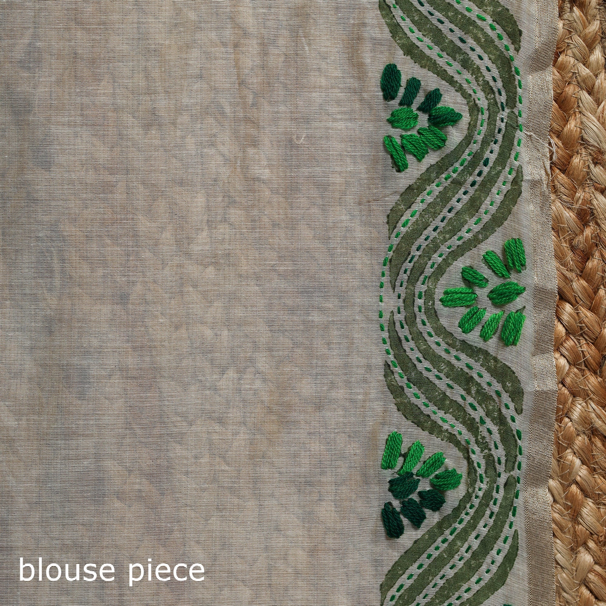 Beige - Handloom Pure Tussar Silk Kantha Work Fabric 13