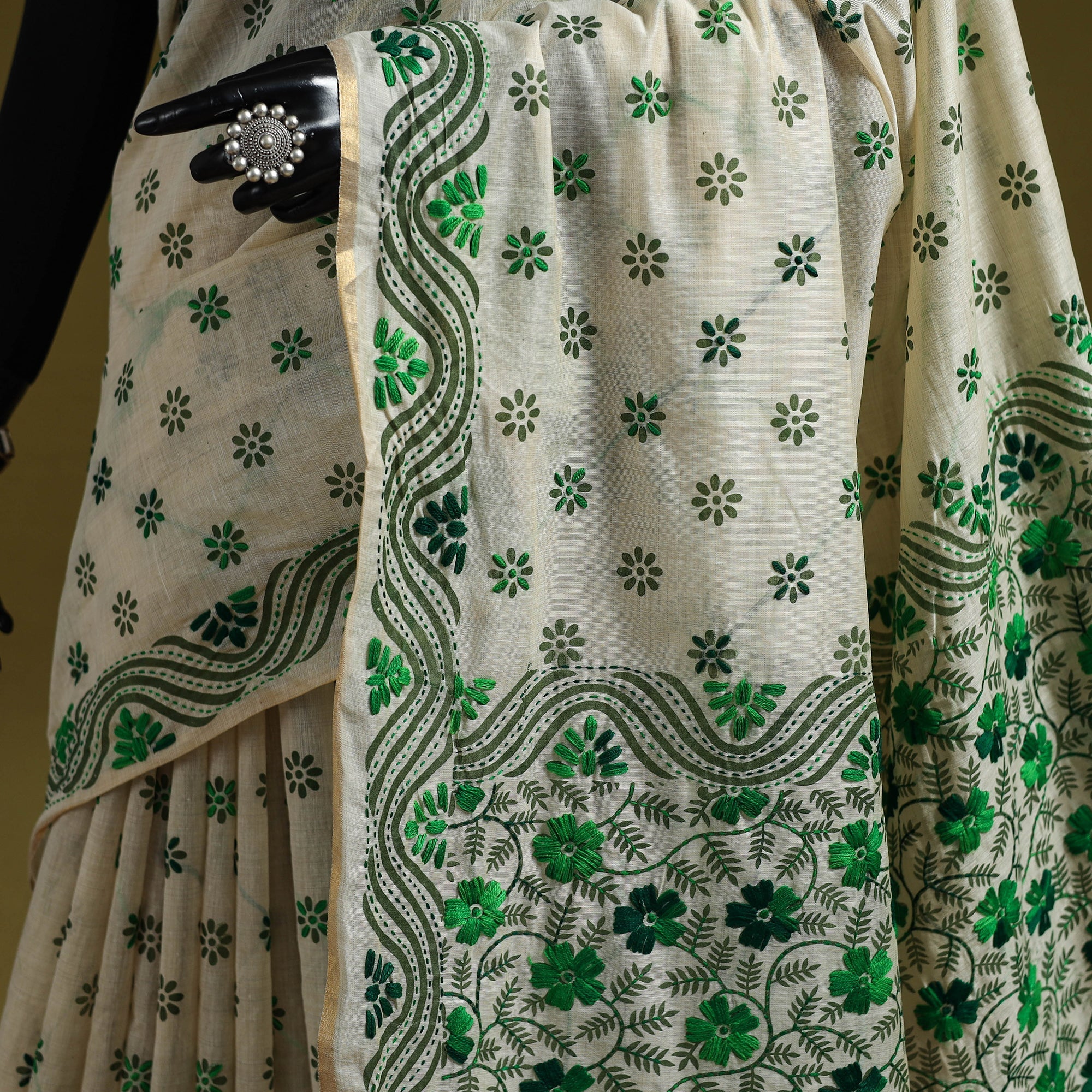 Kantha Embroidery is a centuries-old tradition where people stitch patchwork cloth from rags that was evolved from the thrift of rural women in the Bengali region of the sub-continent