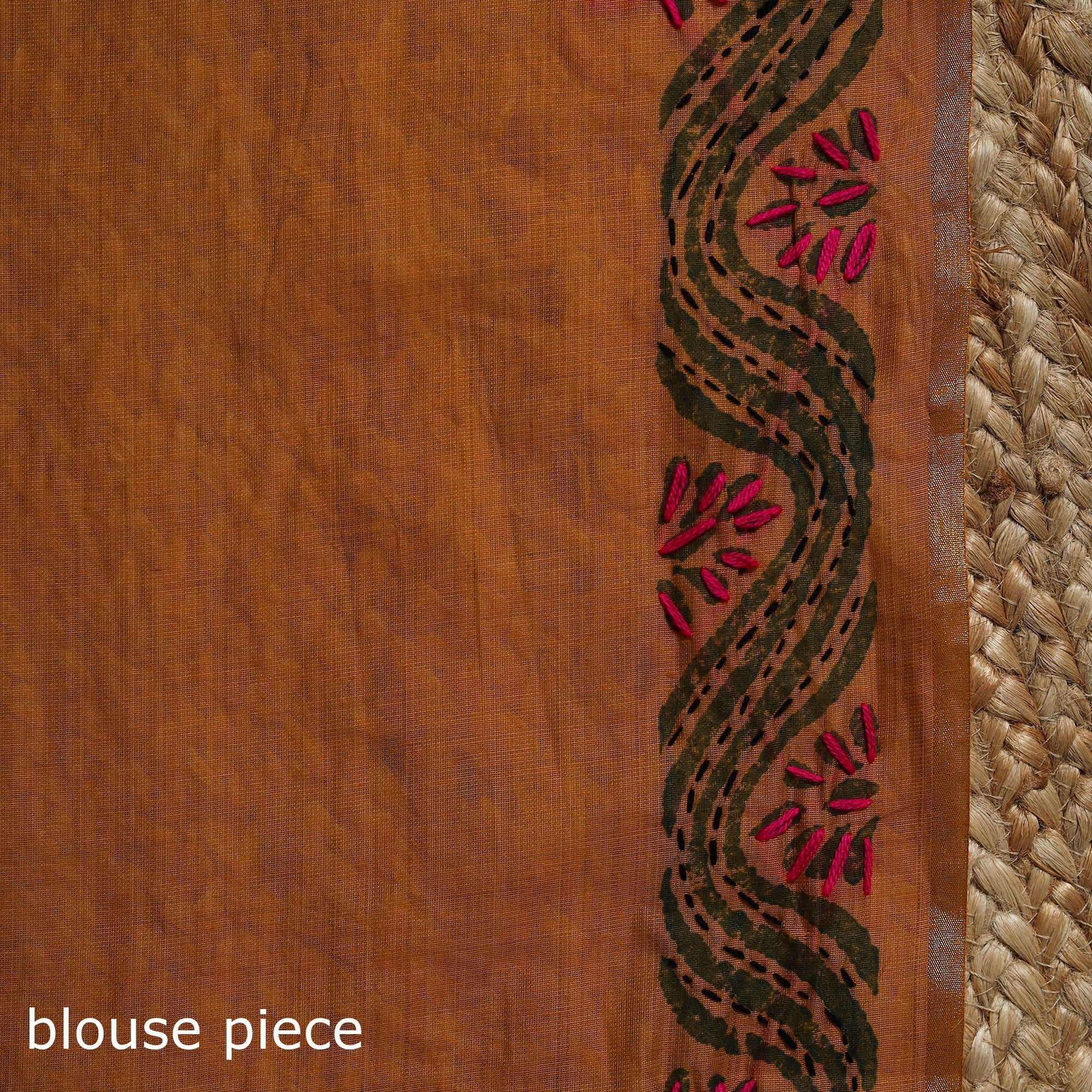 Yellow kantha work silk-cotton saree is hand-embroidered with detailed kantha motifs inspired by nature and daily life. Crafted by skilled rural artisans, it blends comfort and elegance effortlessly. The saree features subtle chapa work under the embroidery, adding depth and character to the design. Light, smooth and easy to drape, it’s perfect for festive occasions, cultural gatherings, or everyday wear.