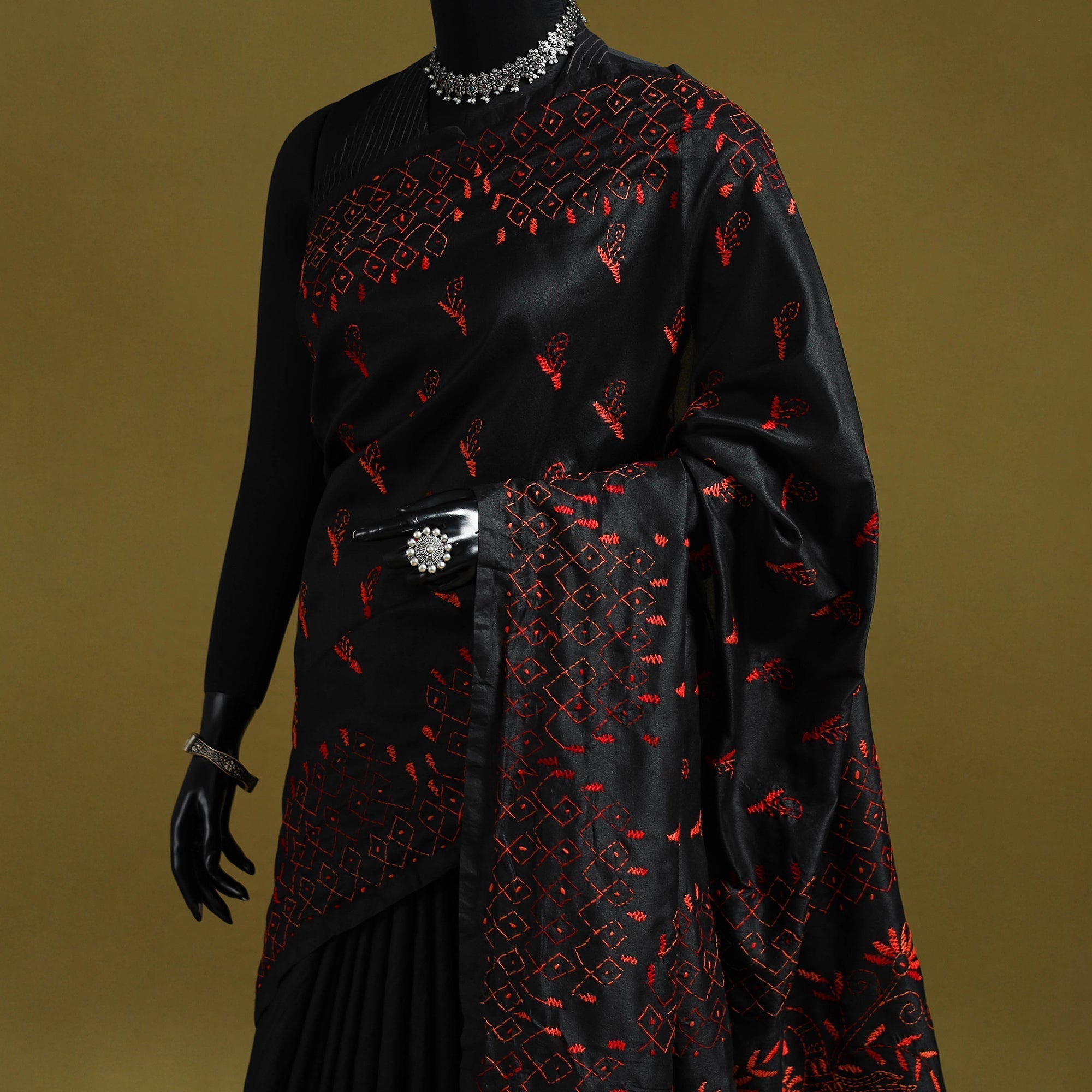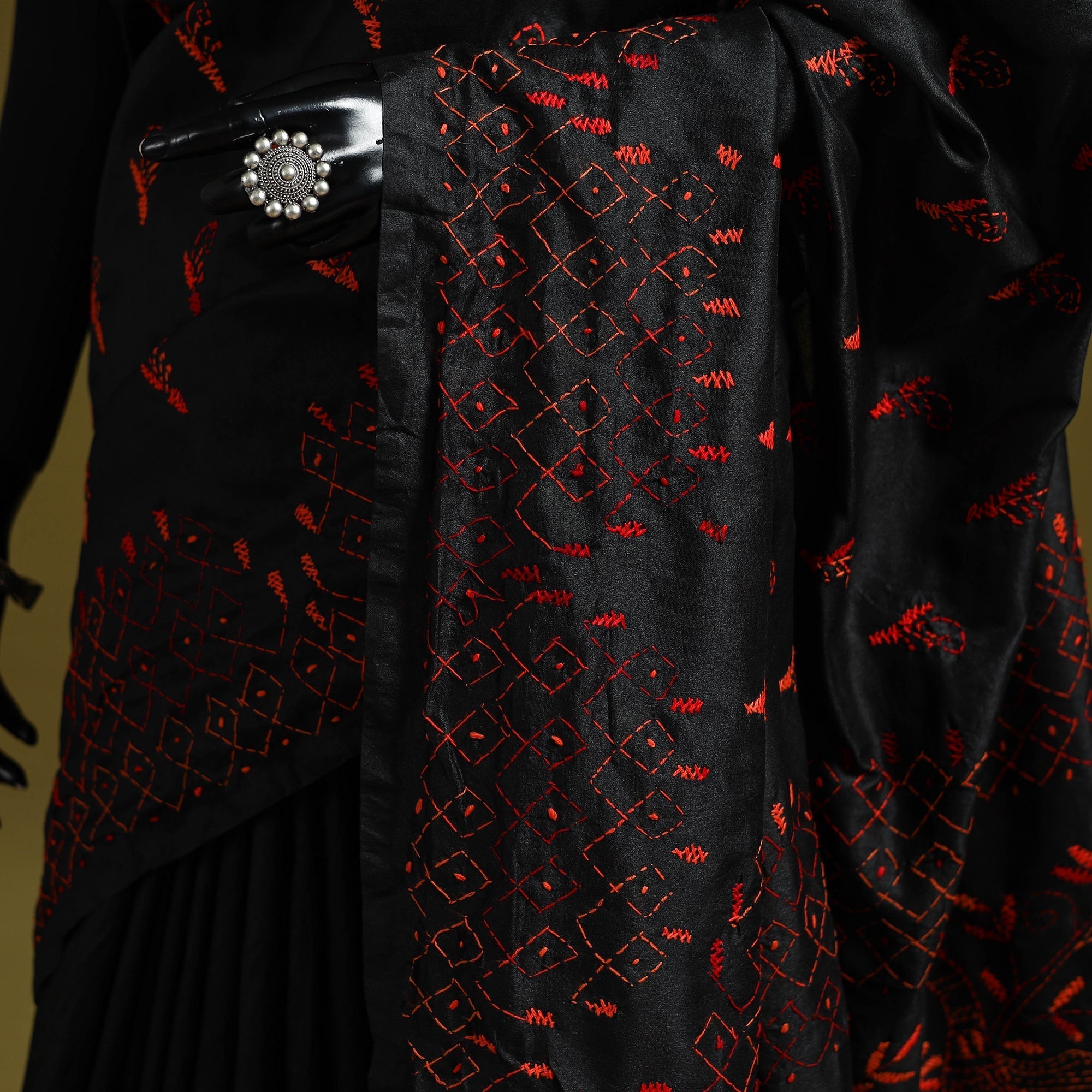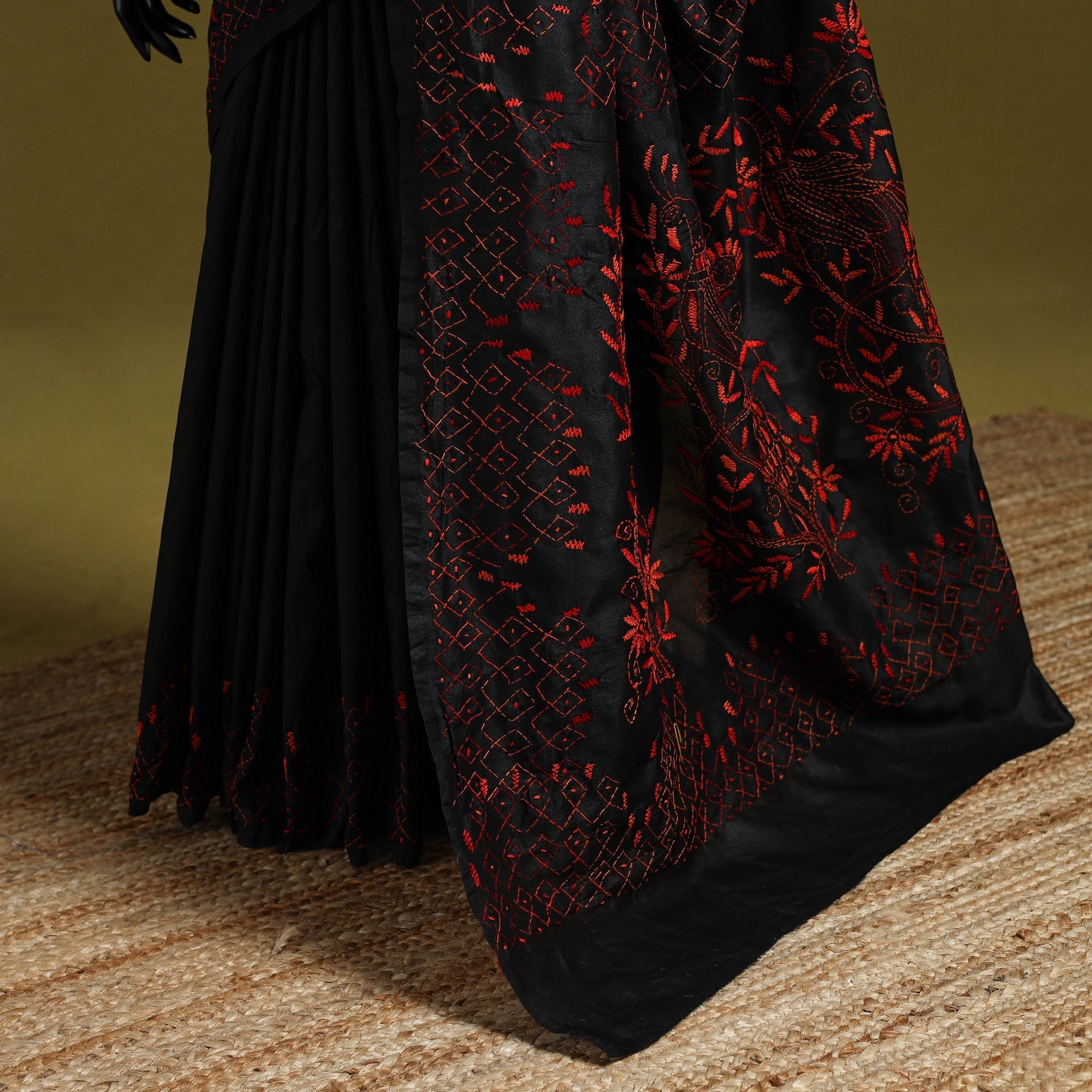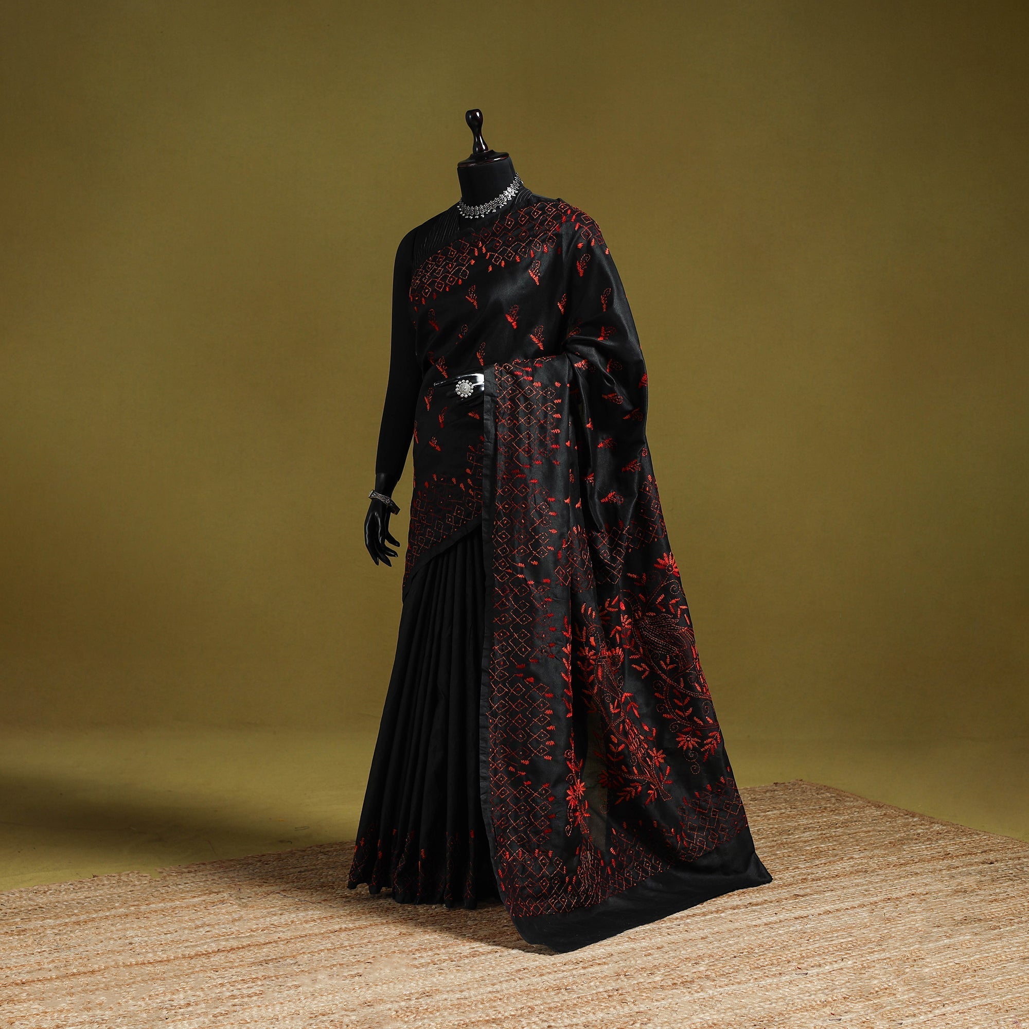 | Material | Black kantha work art silk saree is a beautiful piece of Bengal’s tradition, hand-embroidered with detailed nakshi kantha motifs inspired by nature and daily life. Made by skilled rural artisans, it blends elegance, comfort, and culture in every stitch. Light in weight and easy to drape, it is perfect for festive occasions, cultural gatherings, or everyday wear. |