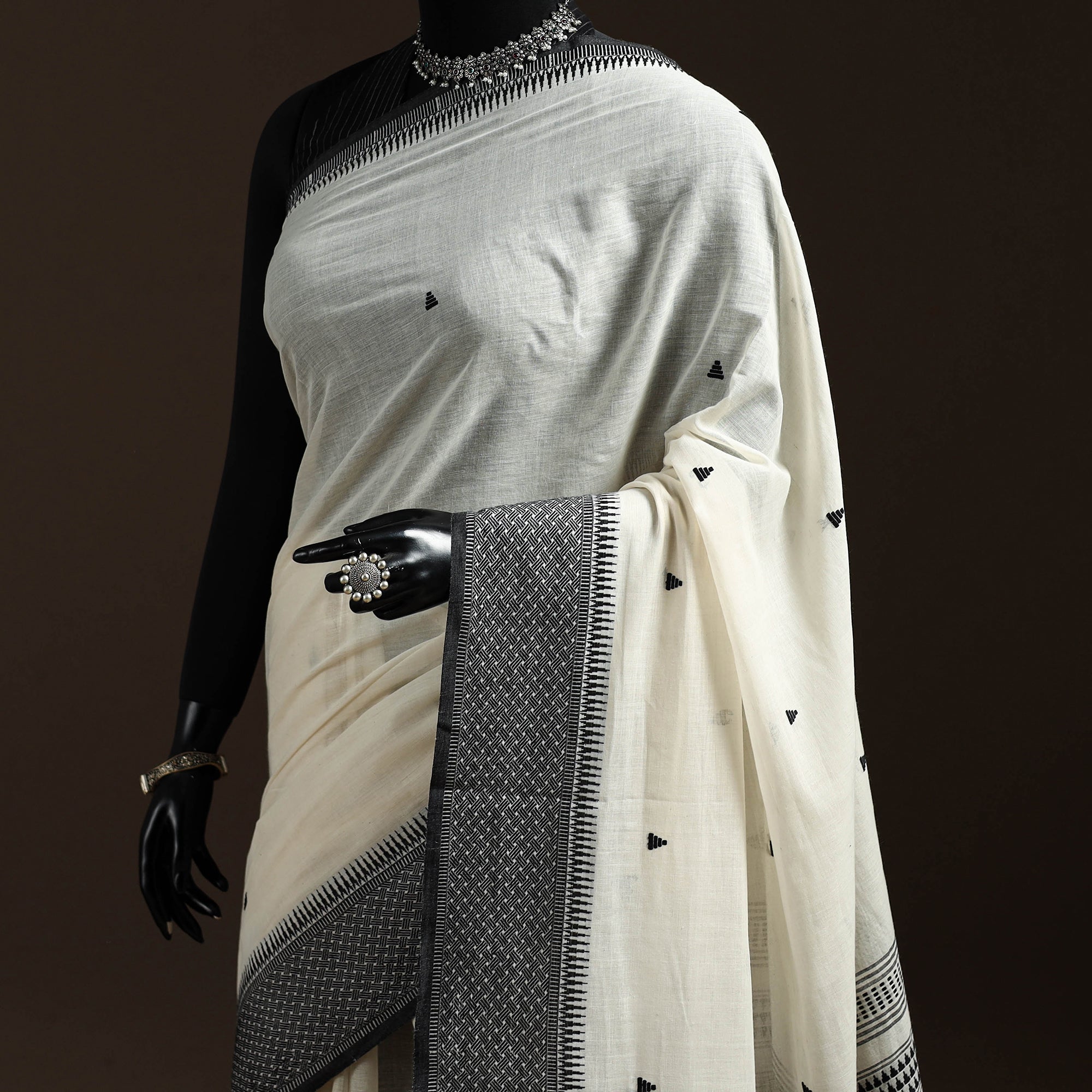Black - Bengal Handwoven Cotton Begumpuri Saree 32