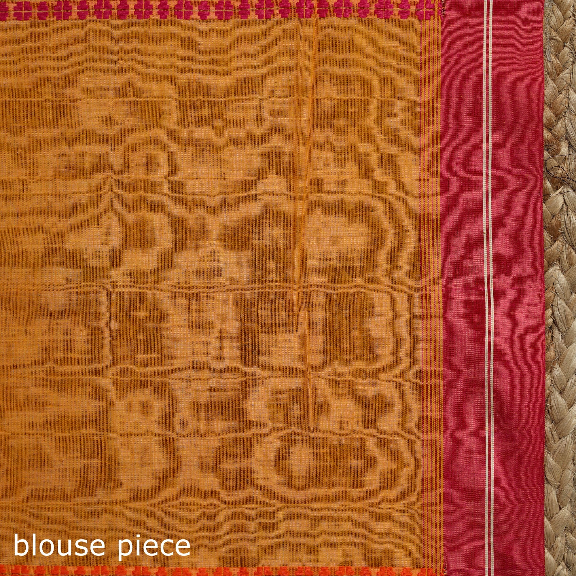 Immerse yourself in the timeless charm of orange bengal handwoven cotton begumpuri saree. Known for their lightweight feel and vibrant designs, this saree feature traditional dobby-weave patterns on the pallu and border, creating a distinctive appeal. Handwoven in Hooghly, West Bengal, each saree celebrates India's rich cultural heritage and artistry. With a pure handloom mark and low maintenance, it’s a perfect addition to your wardrobe. Embrace elegance with every drape and support India’s artisan communities.
