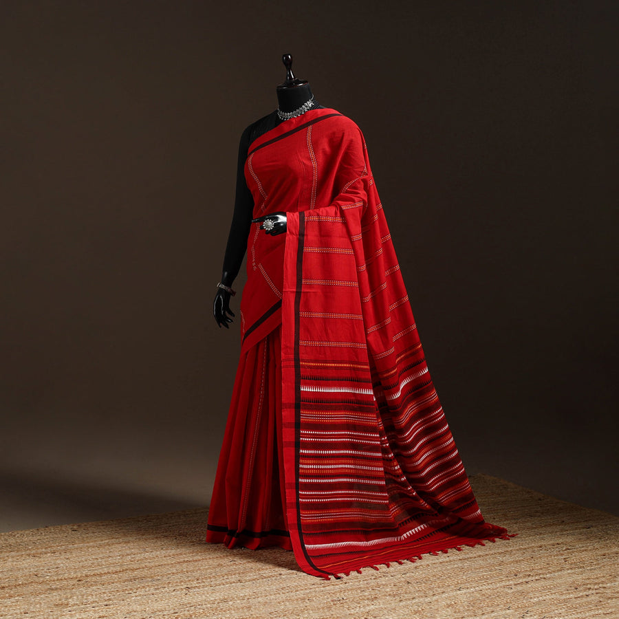 Red - Bengal Handwoven Cotton Begumpuri Saree 34
