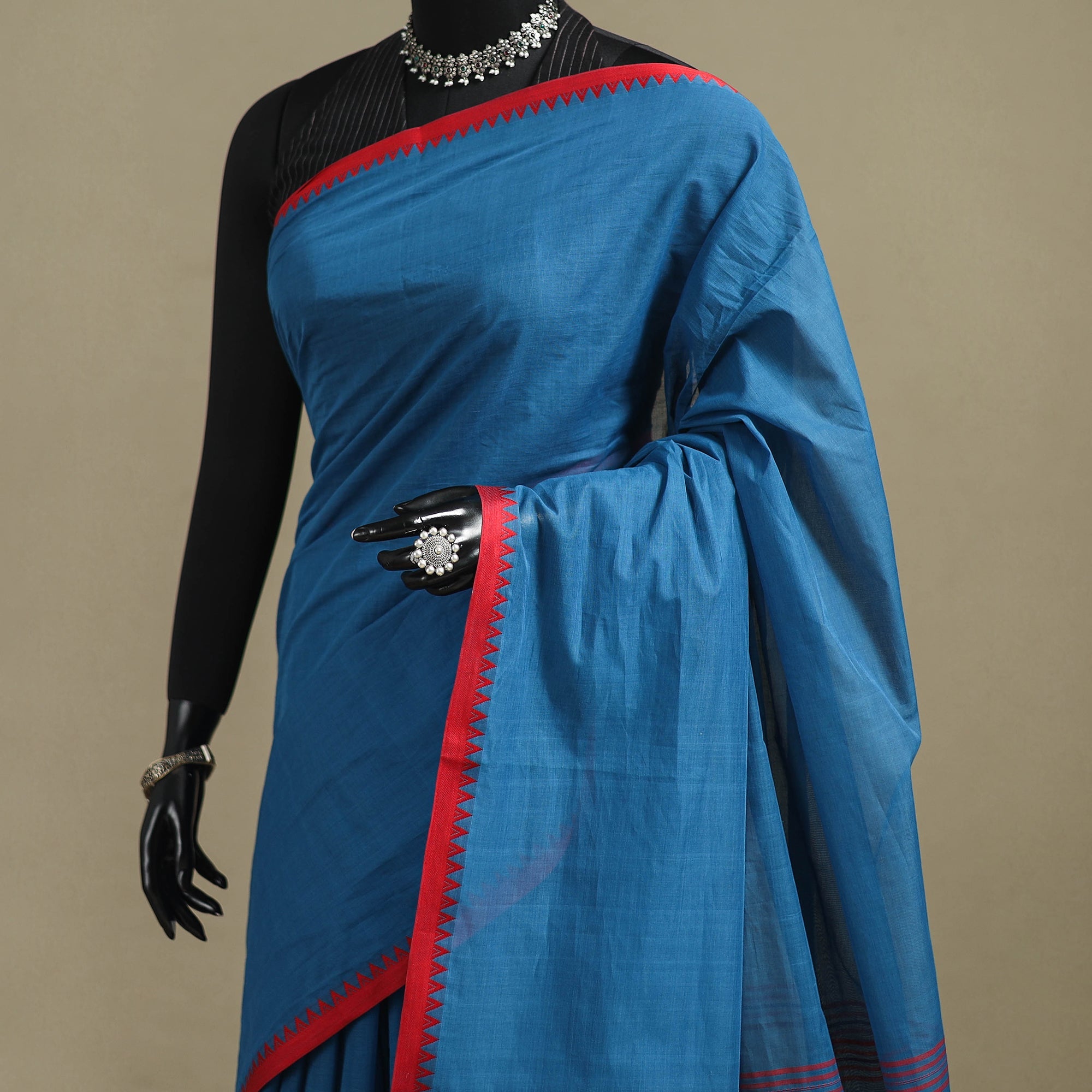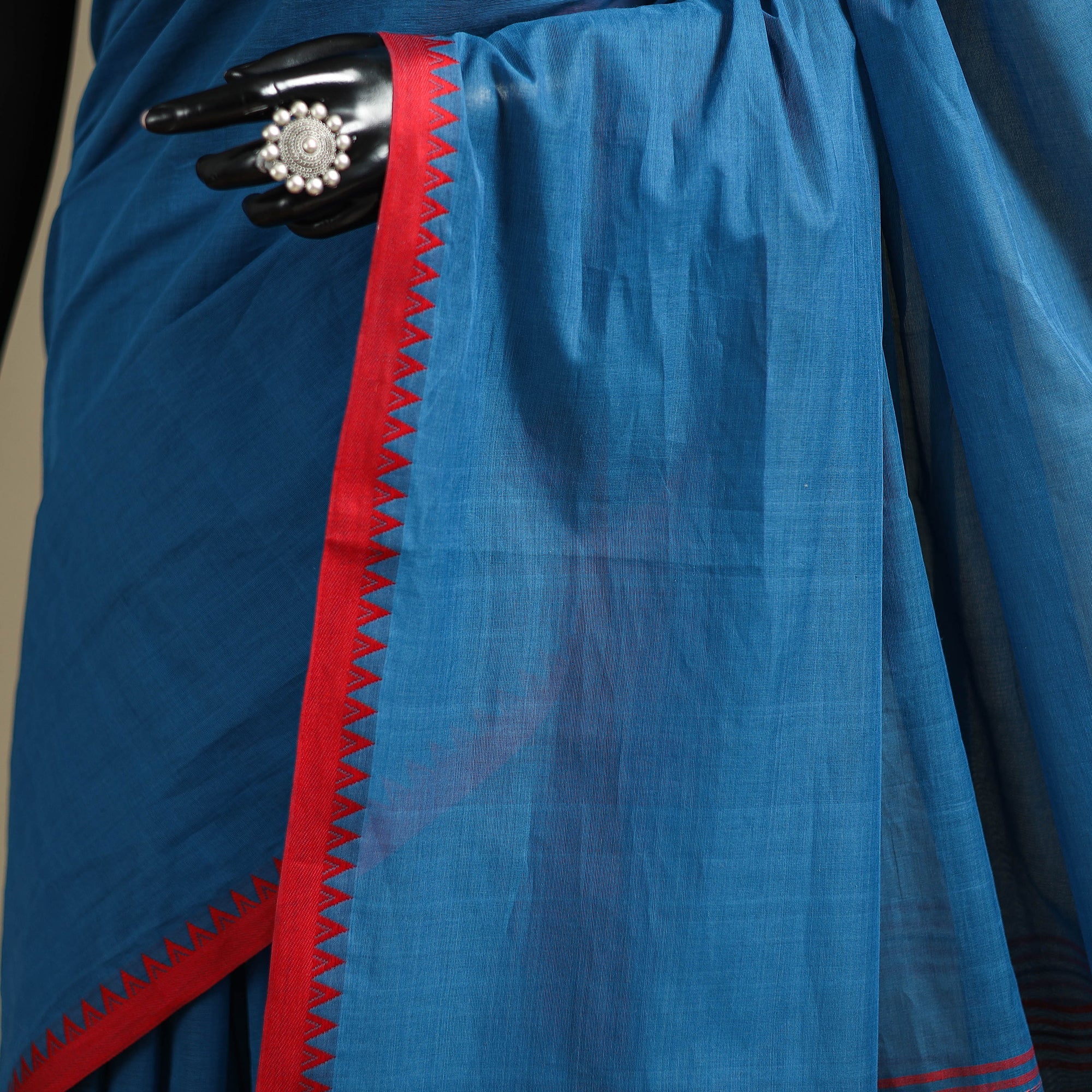 A real silk saree will have slight variations in texture uniformity, which are quite noticeable.