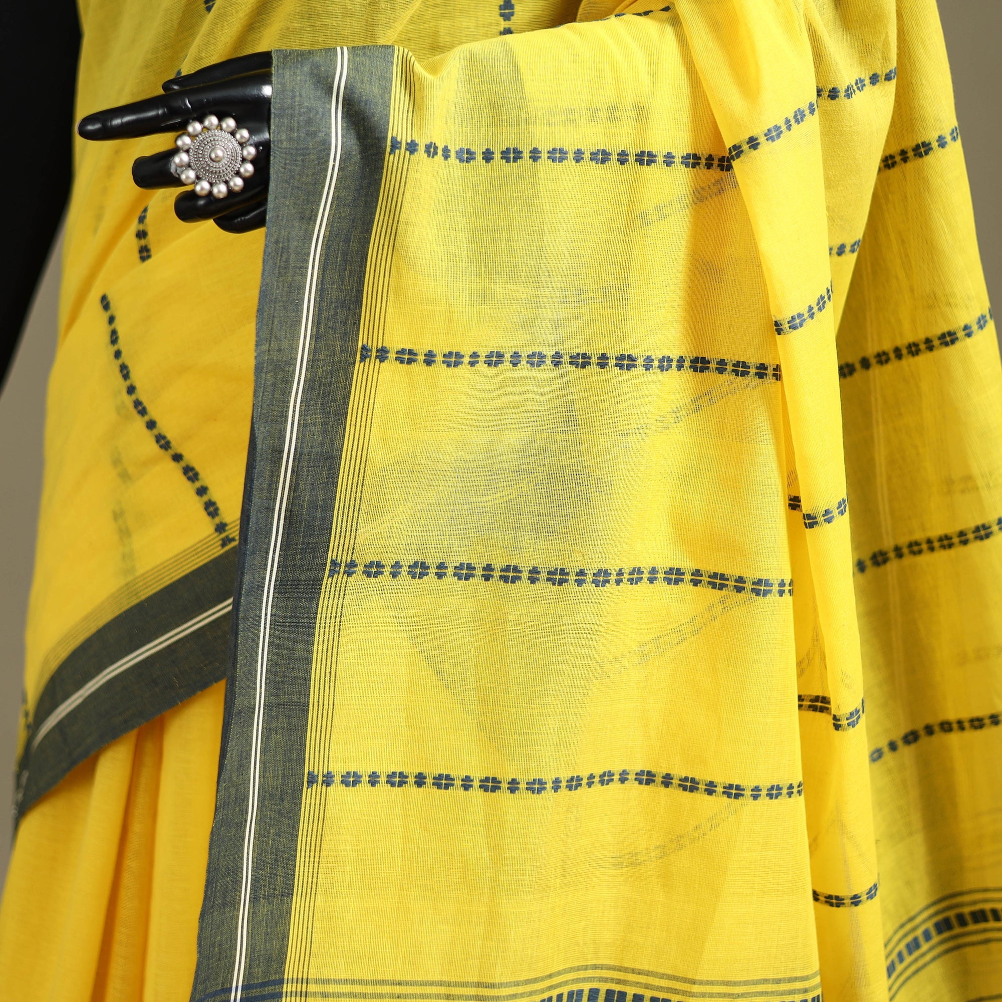 | Material | Yellow begumpuri handwoven cotton saree by Sasha from West Bengal. Known for its lightweight and breathable texture this saree showcases thread weaving techniques, reflecting the of traditional wooden dobby loom craftsmanship. Perfect for both occasional outings and everyday wear. Note: This piece carries tiny knots, thread pulls or uneven lines not flaws but fingerprints. Every irregularity is a whisper from the hands that made it. It’s what happens when tradition weaves through time not machines. If you’re looking for perfection, this isn’t it. But if you’re looking for soul you’ve found it. |