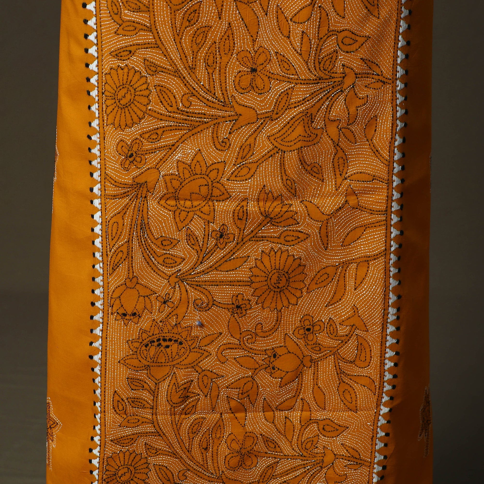 | Material | Yellow kantha hand embroidery unstitched cotton kurta material thoughtfully created by skilled artisans of West Bengal. This kurta material sowcases each hand embroidered detail reflects the region’s rich cultural heritage with a modern appeal. The embroidery features motifs inspired by rural life, folk tales, mythological stories, flowers, leaves, animals and geometric patterns. Comfortable and versatile, this fabric is ideal for crafting a kurta that feels elegant yet deeply rooted in tradition. |