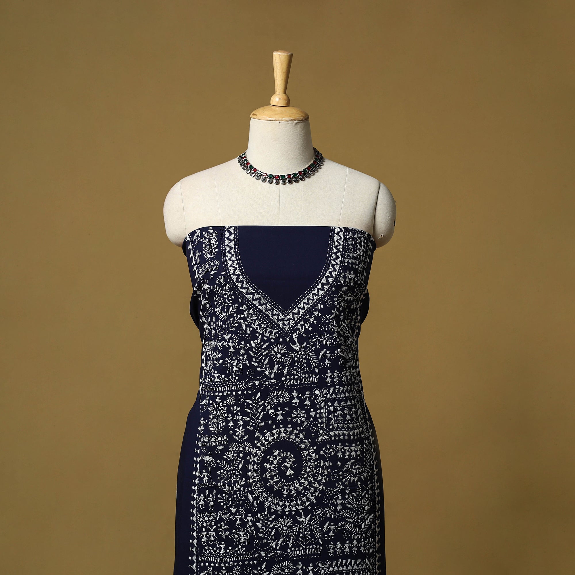 | Material | Kantha hand embroidery unstitched cotton kurta material thoughtfully created by skilled artisans of West Bengal.This kurta material sowcases each hand embroidered detail reflects the region’s rich cultural heritage with a modern appeal. The embroidery features motifs inspired by rural life, folk tales, mythological stories, flowers, leaves, animals, and geometric patterns. Comfortable and versatile, this fabric is ideal for crafting a kurta that feels elegant yet deeply rooted in tradition. |