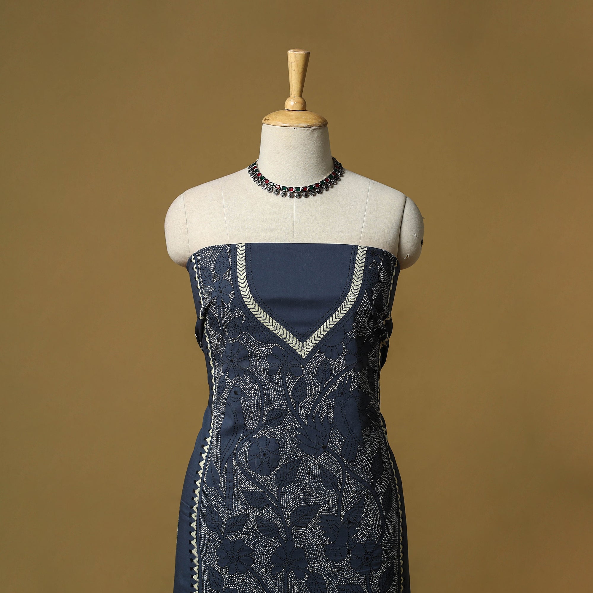 • Bengal Kantha Hand Embroidered Unstitched Kurta Material (2.75M) 14