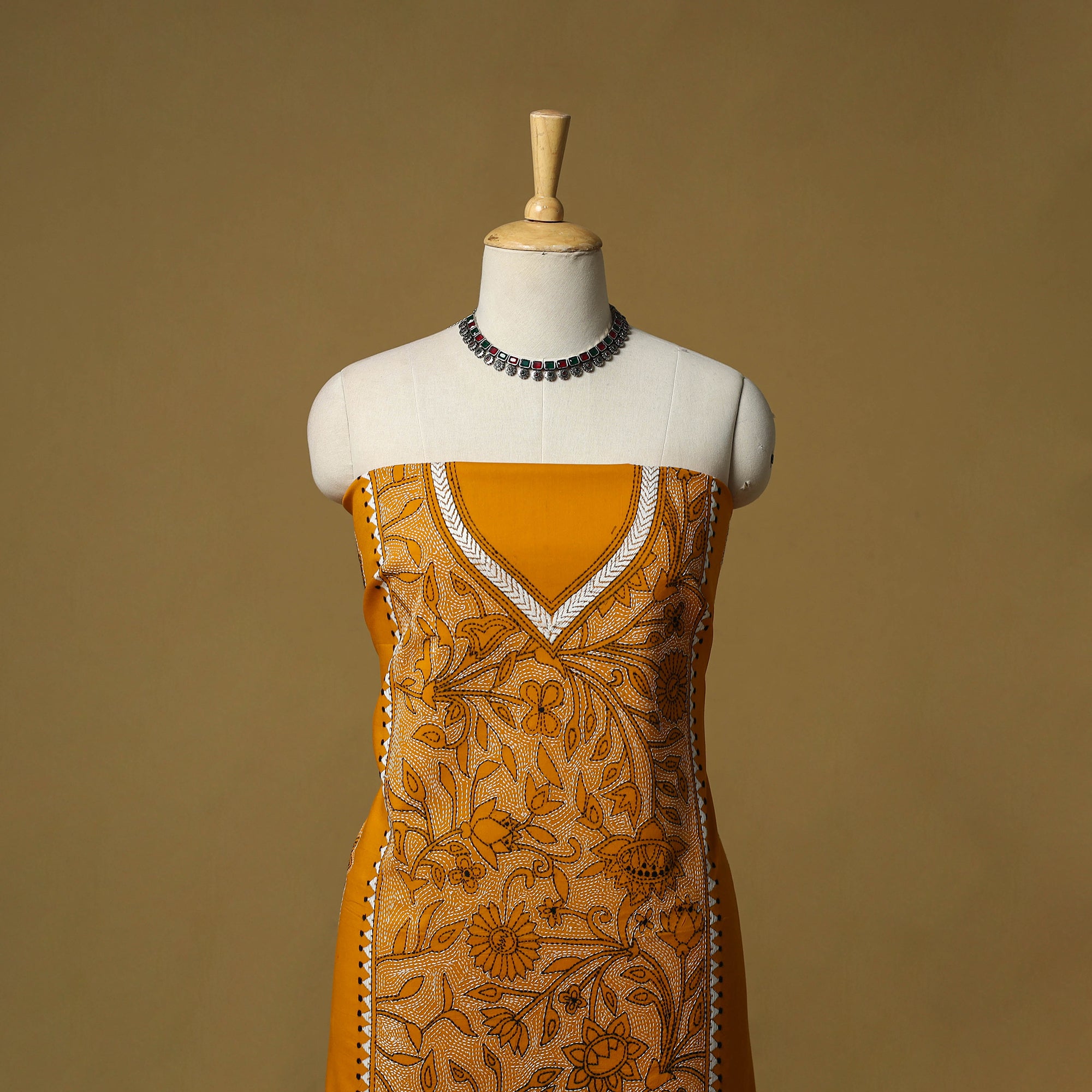 • Bengal Kantha Hand Embroidered Unstitched Kurta Material (2.75M) 26