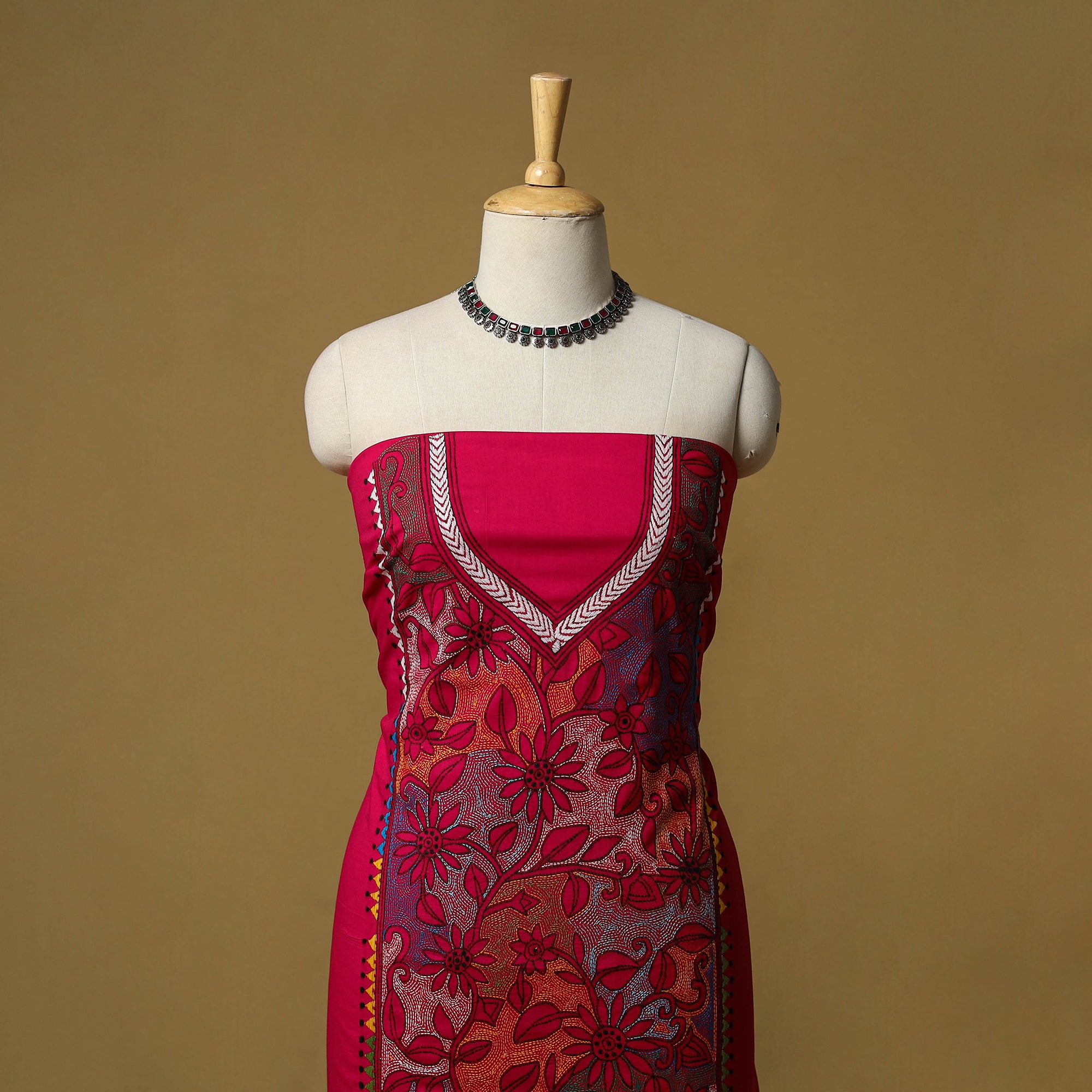 • Bengal Kantha Hand Embroidered Unstitched Kurta Material (2.75M) 28