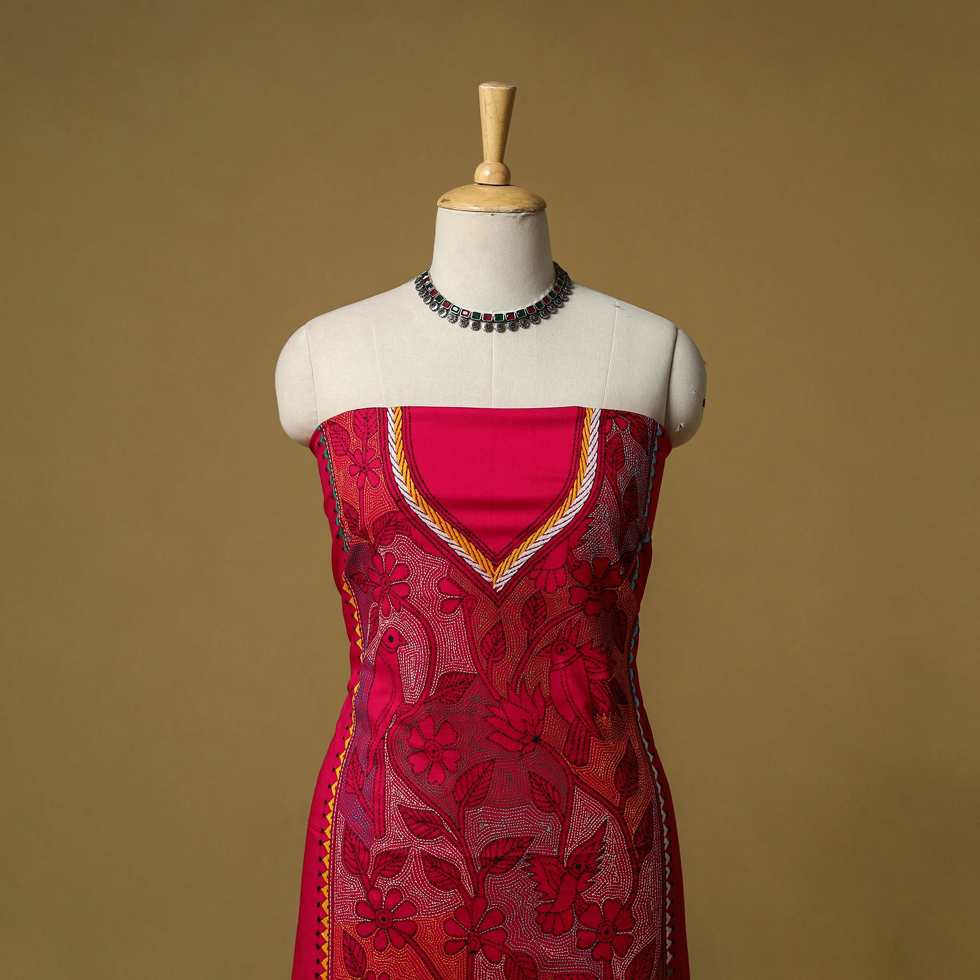 • Bengal Kantha Hand Embroidered Unstitched Kurta Material (2.8M) 22