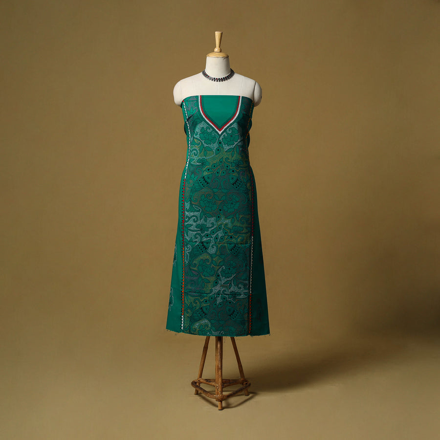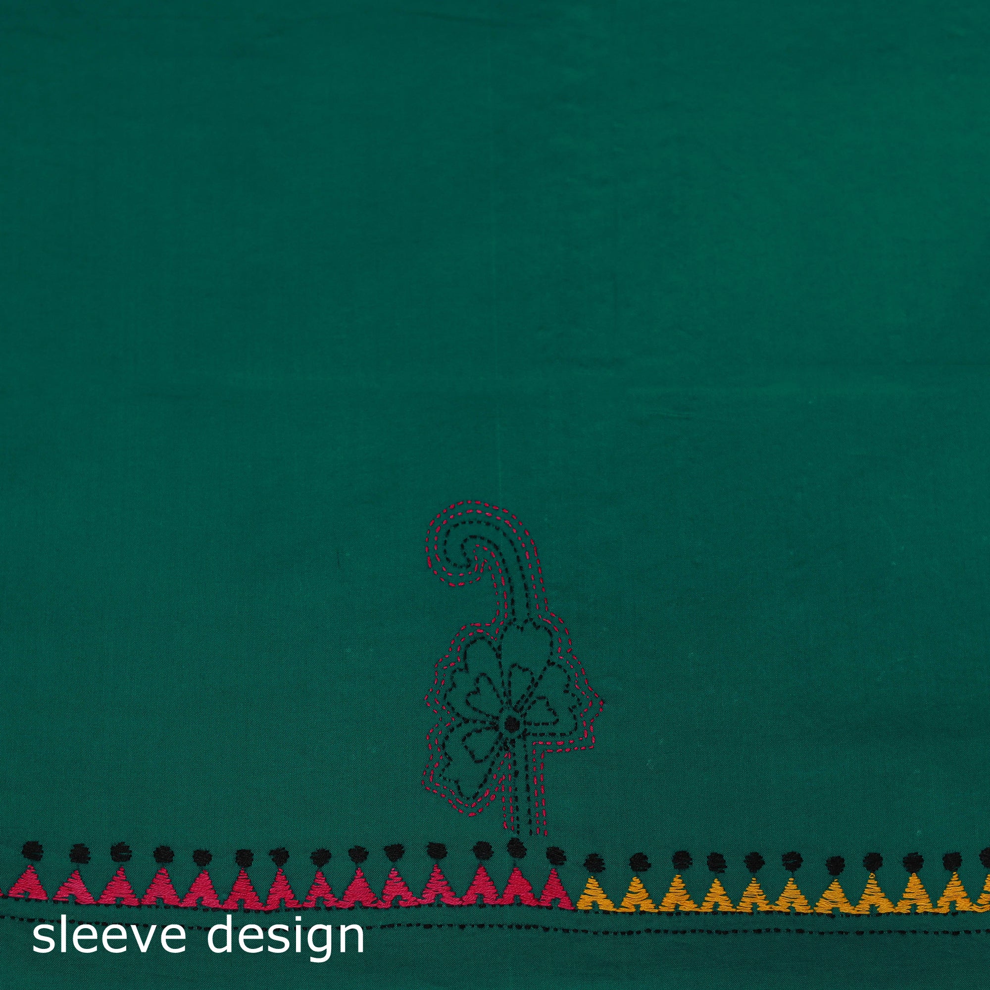 Kantha hand embroidery unstitched cotton kurta material thoughtfully created by skilled artisans of West Bengal.This kurta material sowcases each hand embroidered detail reflects the region’s rich cultural heritage with a modern appeal. The embroidery features motifs inspired by rural life, folk tales, mythological stories, flowers, leaves, animals, and geometric patterns. Comfortable and versatile, this fabric is ideal for crafting a kurta that feels elegant yet deeply rooted in tradition.