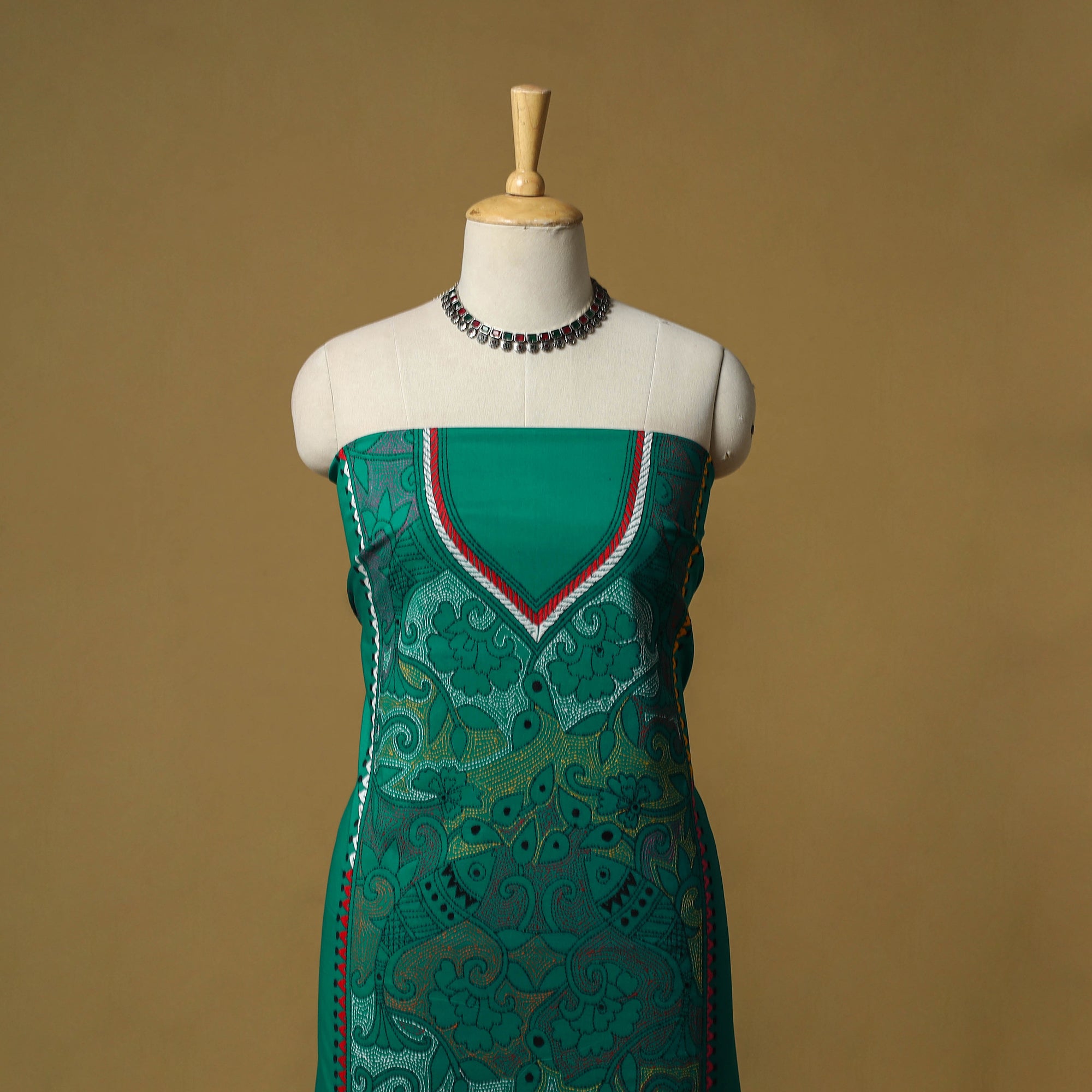 Bengal Kantha Hand Embroidered Unstitched Kurta Material (2.8M) 27