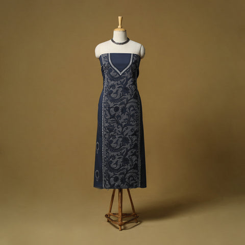 Kantha hand embroidery unstitched cotton kurta material thoughtfully created by skilled artisans of West Bengal.This kurta material sowcases each hand embroidered detail reflects the region’s rich cultural heritage with a modern appeal. The embroidery features motifs inspired by rural life, folk tales, mythological stories, flowers, leaves, animals, and geometric patterns. Comfortable and versatile, this fabric is ideal for crafting a kurta that feels elegant yet deeply rooted in tradition.