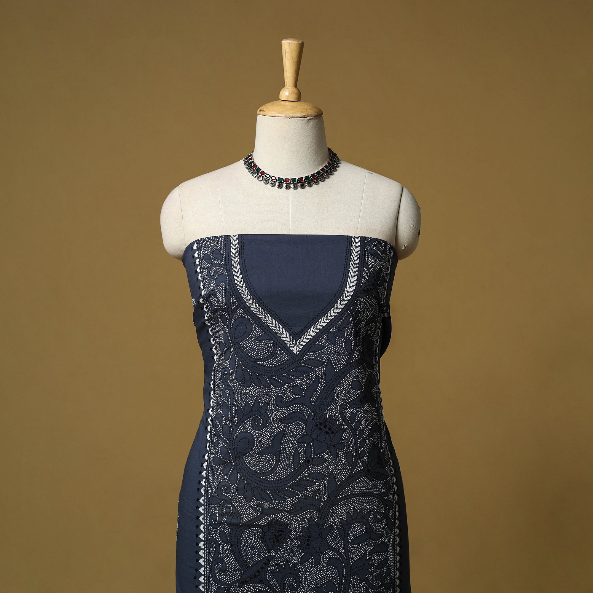 • Bengal Kantha Hand Embroidered Unstitched Kurta Material (2.8M) 32
