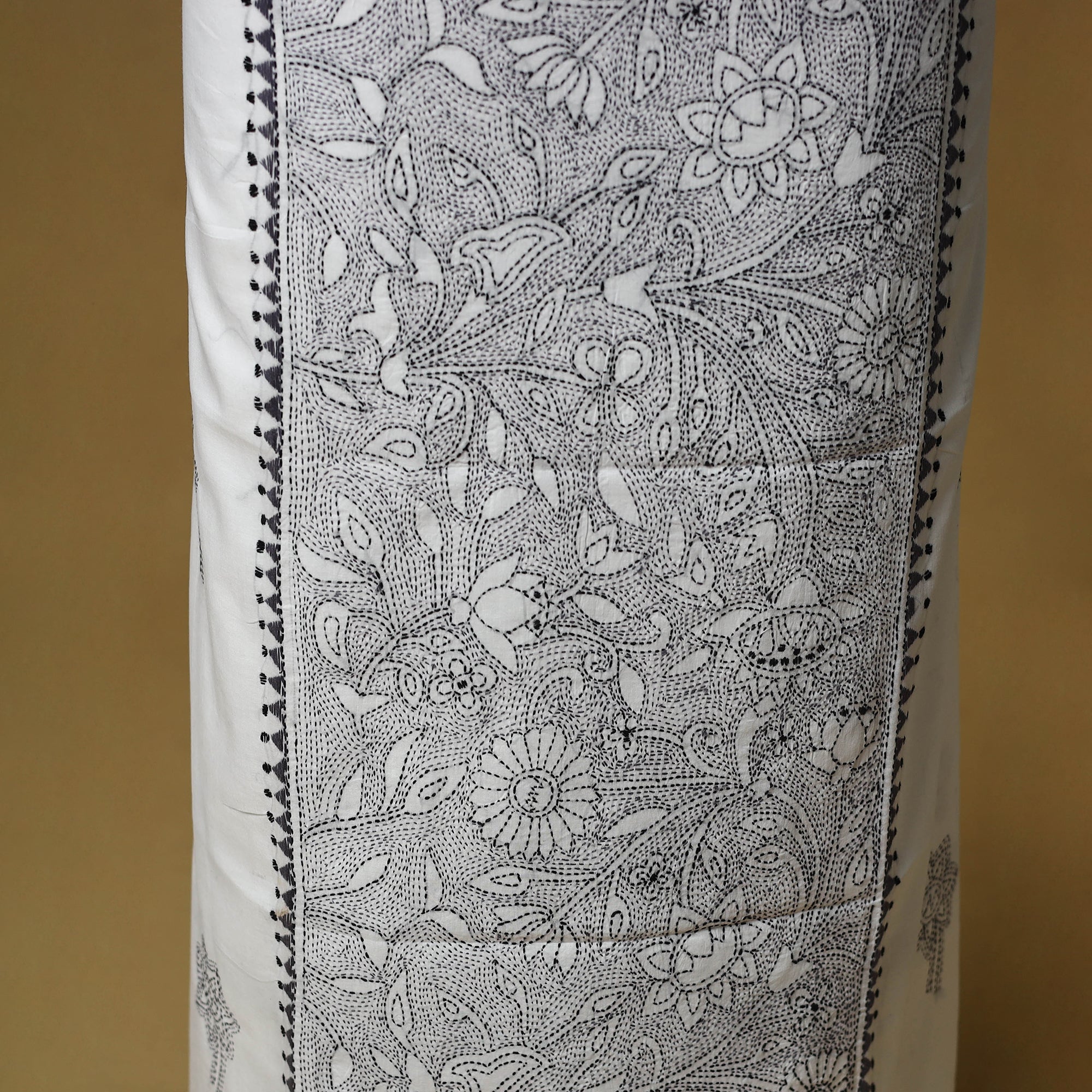 | Material | Kantha hand embroidery unstitched cotton kurta material thoughtfully created by skilled artisans of West Bengal.This kurta material sowcases each hand embroidered detail reflects the region’s rich cultural heritage with a modern appeal. The embroidery features motifs inspired by rural life, folk tales, mythological stories, flowers, leaves, animals, and geometric patterns. Comfortable and versatile, this fabric is ideal for crafting a kurta that feels elegant yet deeply rooted in tradition. |