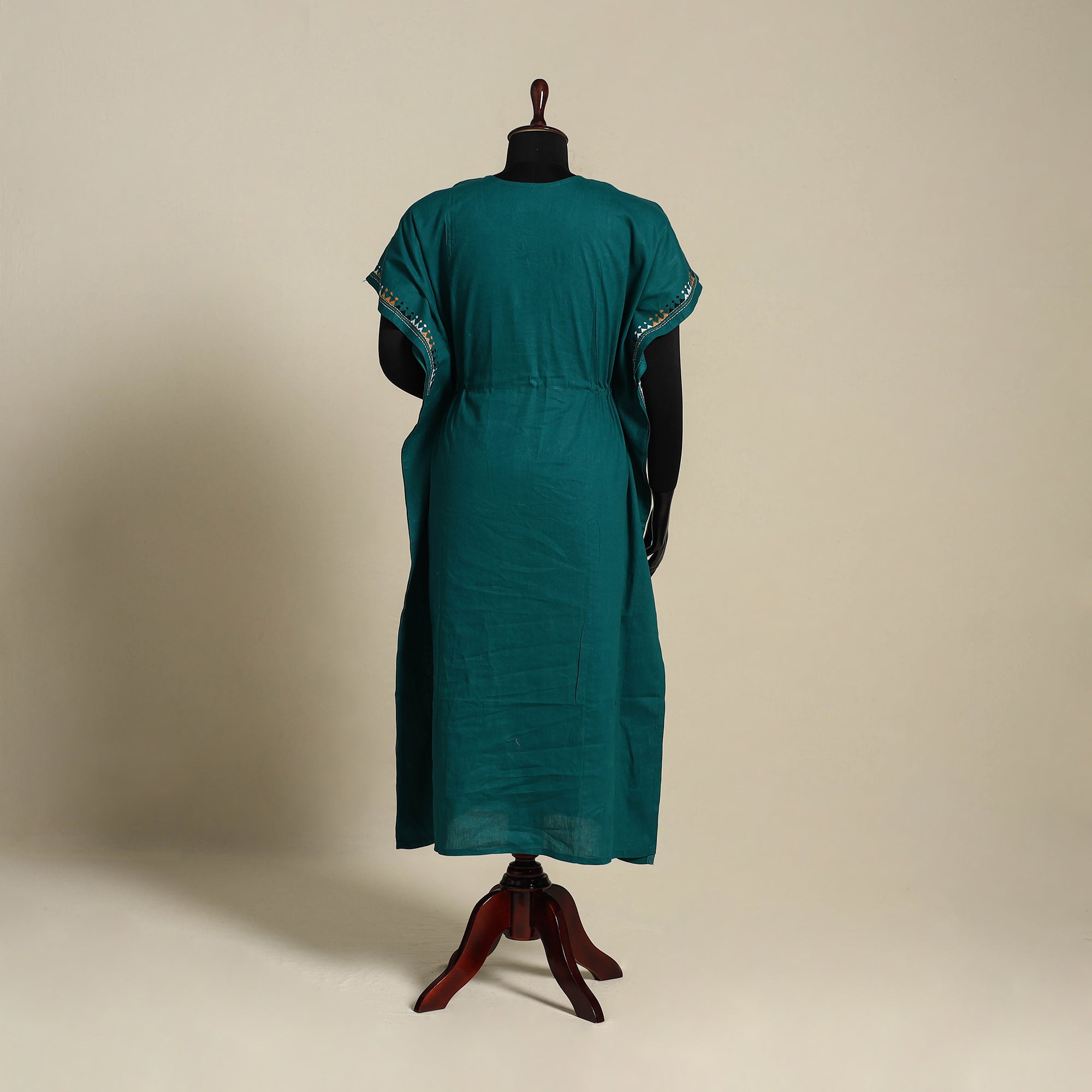 Green - Bengal Kantha Hand Embroidery Cotton Kaftan (Long) 16