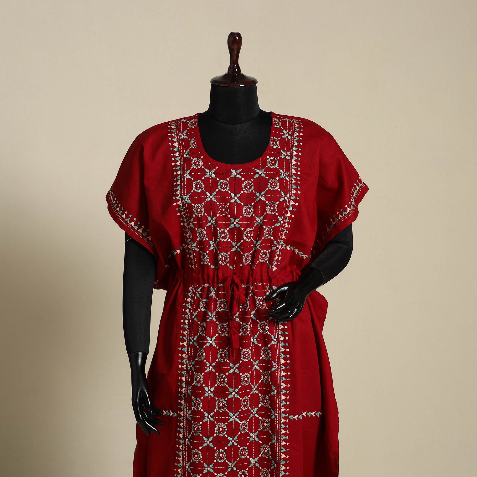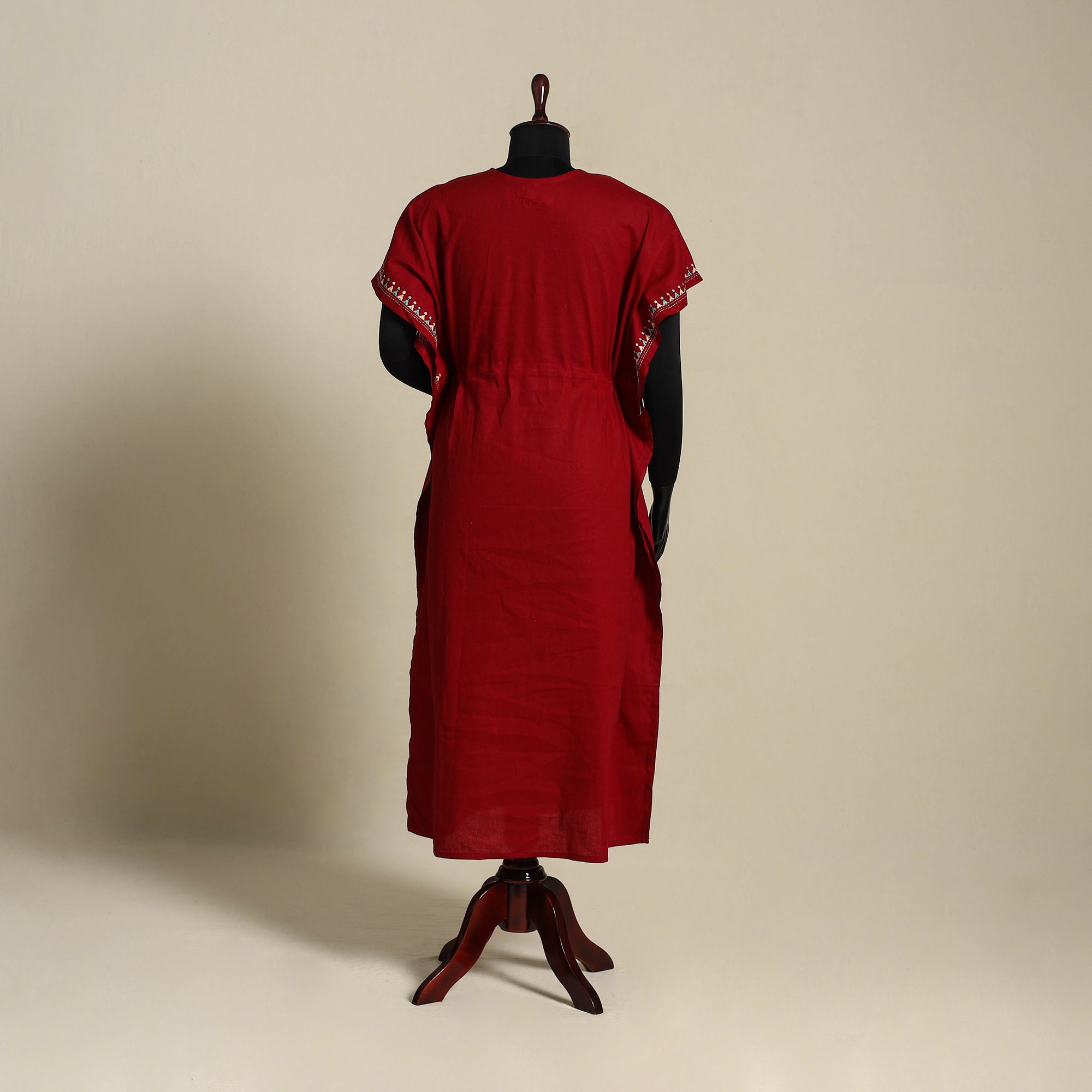 Maroon - Bengal Kantha Hand Embroidery Cotton Kaftan (Long) 24