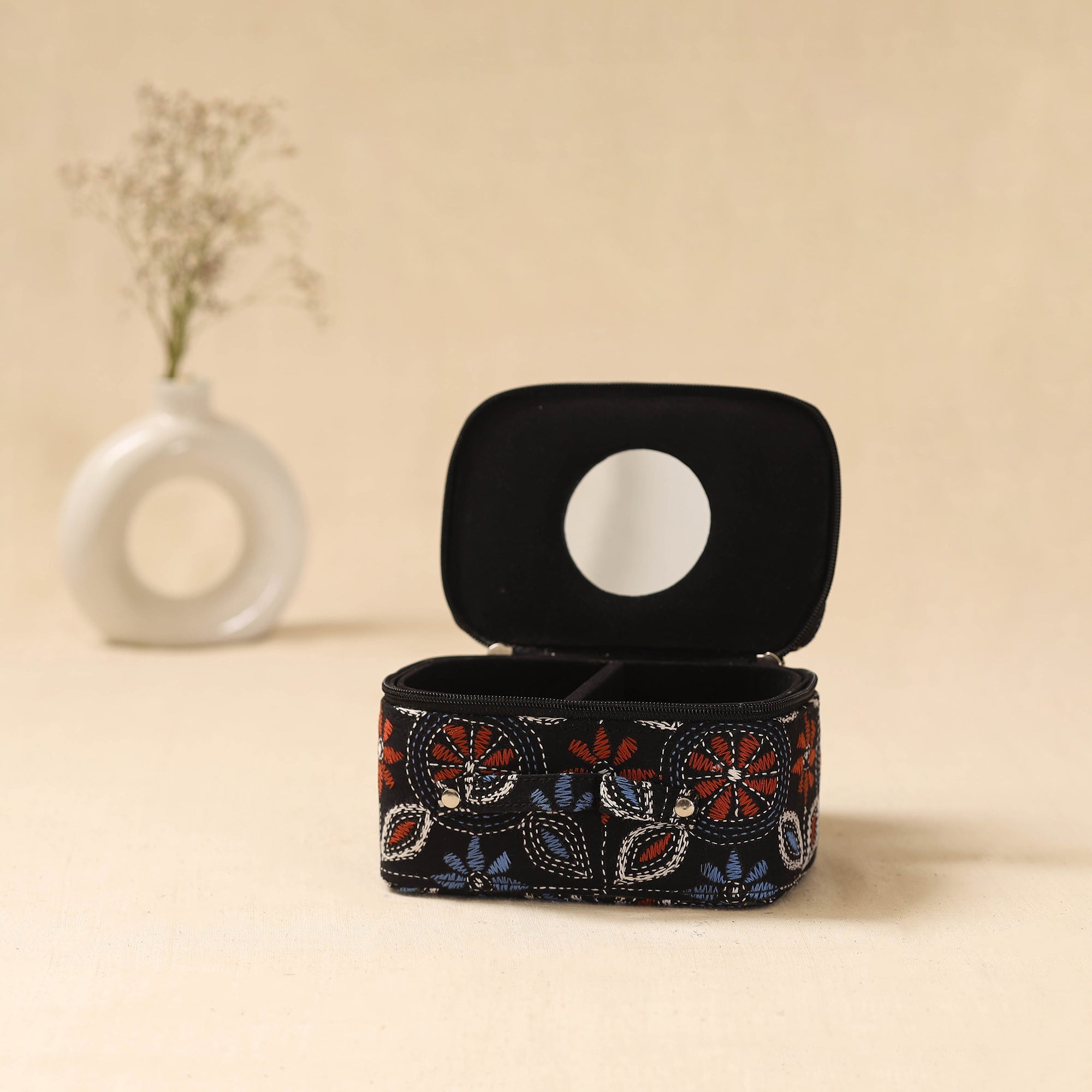 Bengal Kantha Work Handcrafted Jewellery Box with Mirror 06