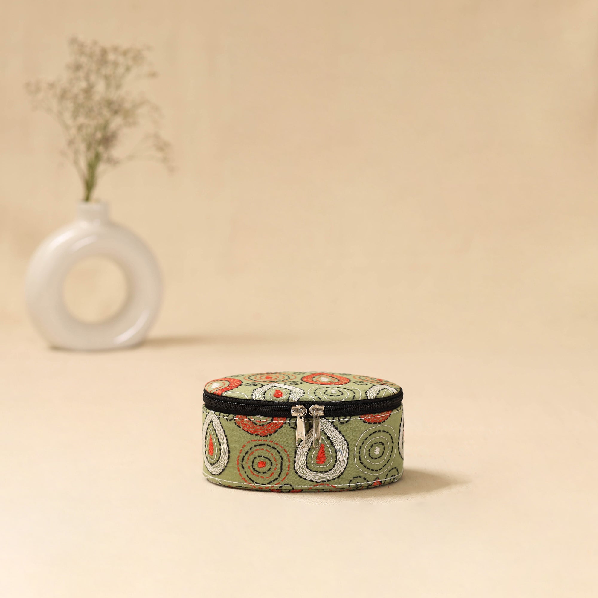 • Bengal kantha work handcrafted oval jewellery box