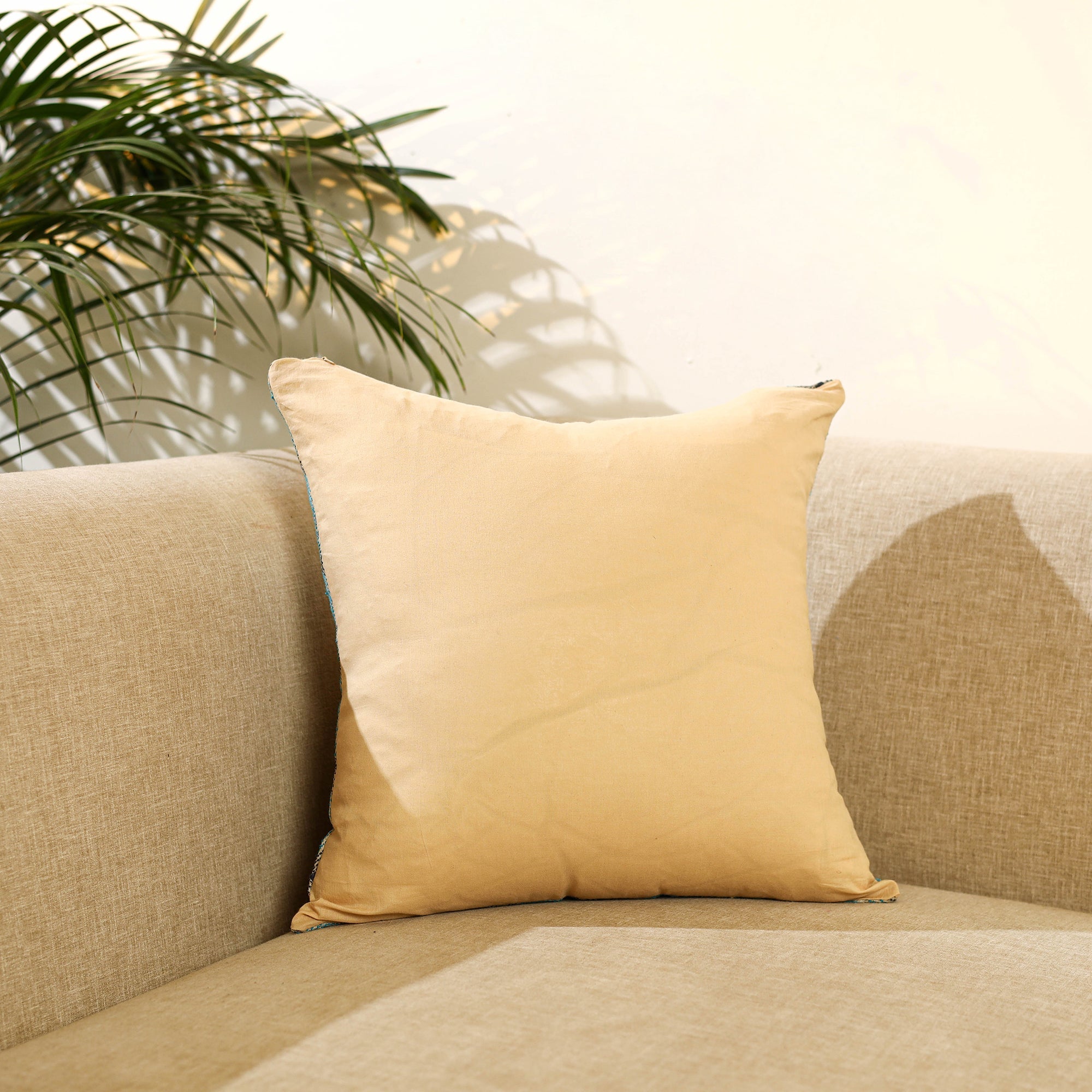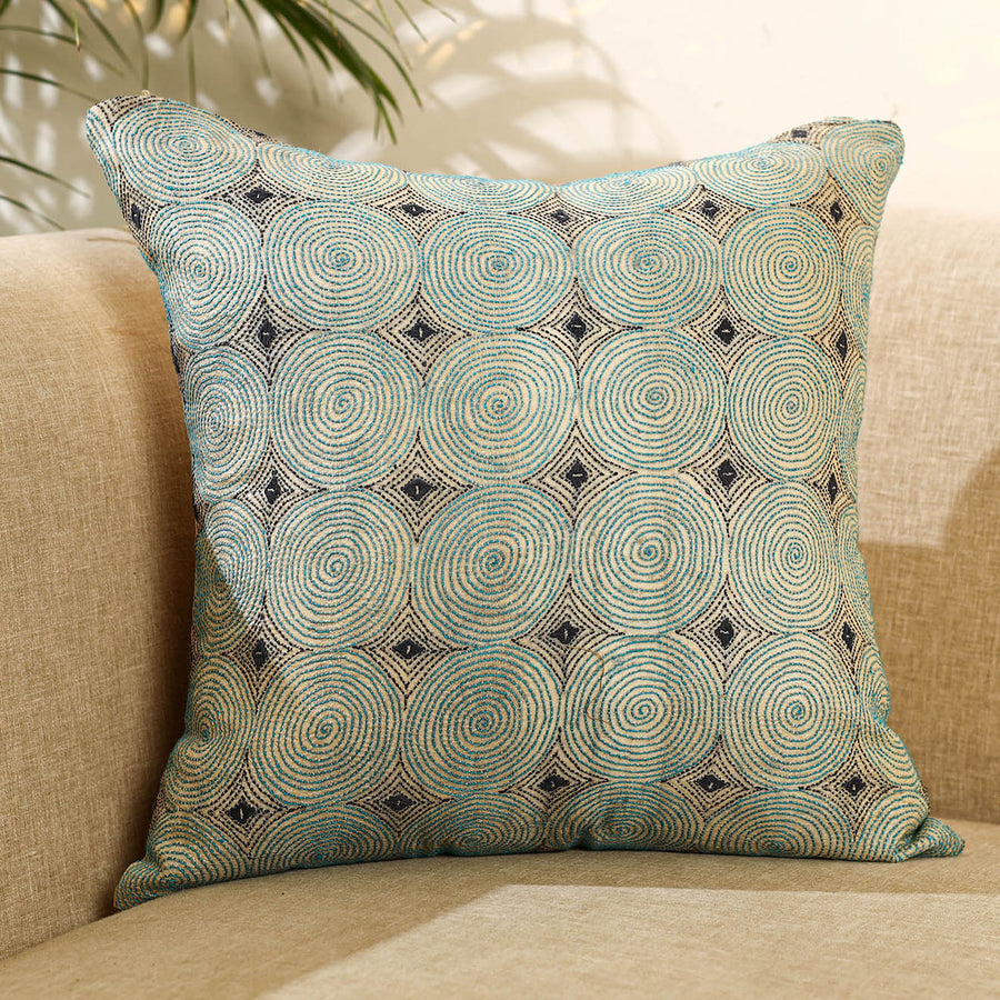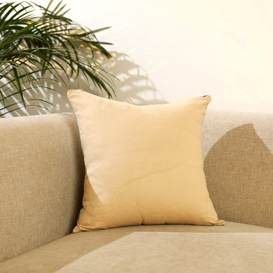 Enhance your home décor with this green bengal kantha work reversible silk cushion cover. Adorned with intricate kantha embroidery a cherished craft from Bengal this cushion cover highlights exquisite artistry on rich silk fabric. Its reversible design offers versatility, allowing you to effortlessly refresh your space with a touch of timeless elegance and style.