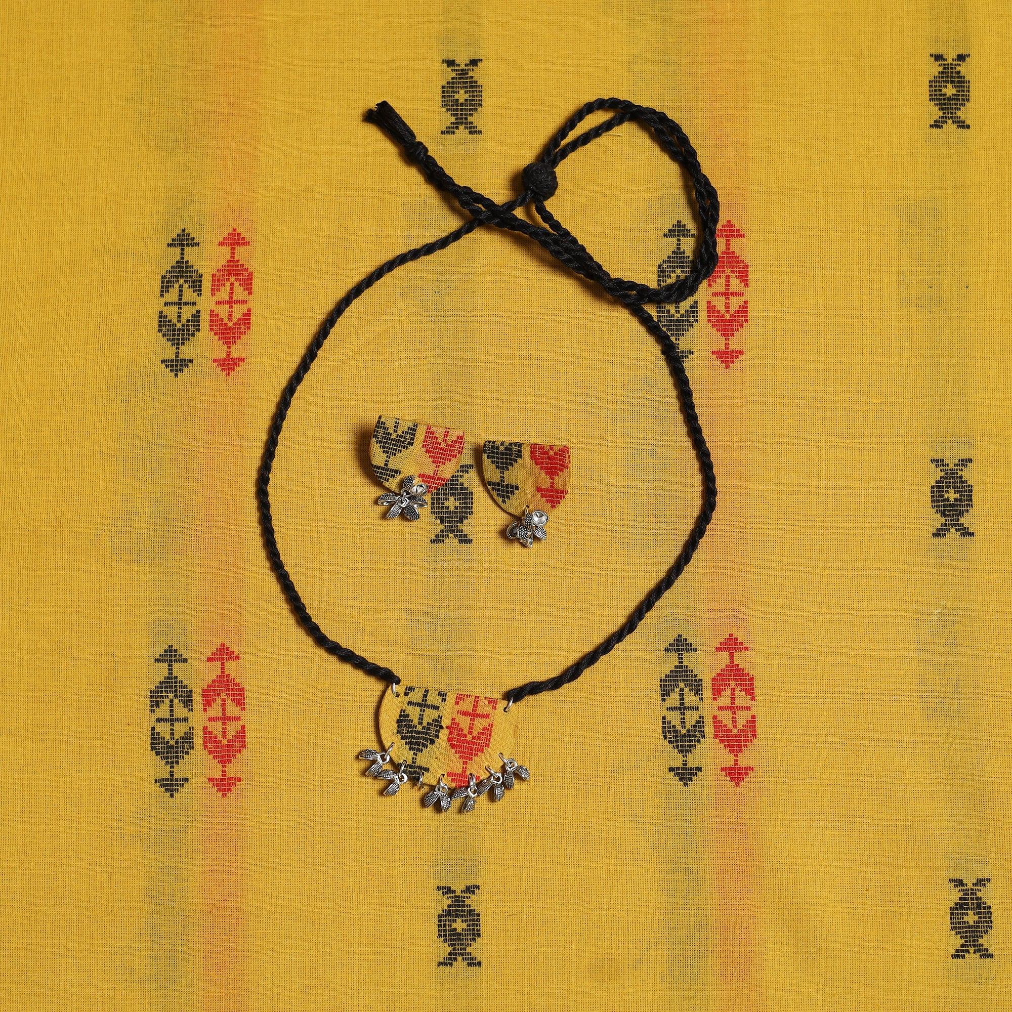 Necklace : Length - 60 cm, Width - 1 cm, Pendant : Length - 3.5 cm, Width - 4 cm, (adjustable, drawstring closure). Earrings : Length - 3.5 cm, Width - 3 cm.