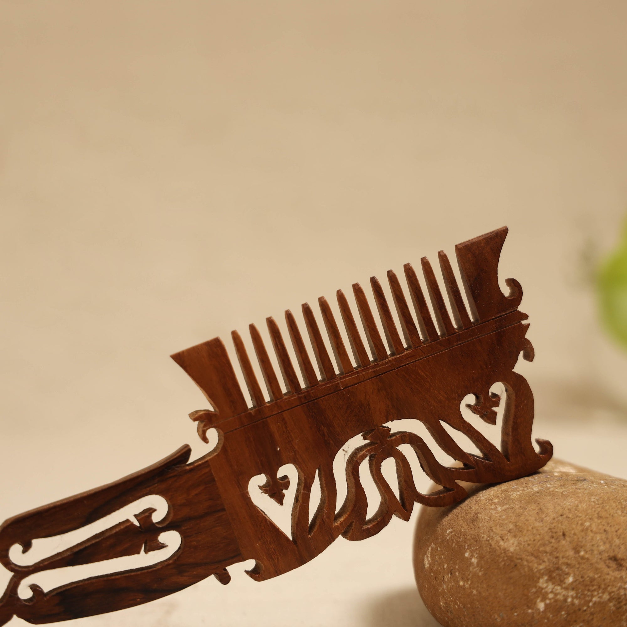 Eco-friendly hair comb is hand-carved from brown sheesham wood by skilled artisans from Bijnor. This wooden gentle glide on the scalp, it helps distribute natural oils evenly, nourishing your hair and supporting healthy growth.