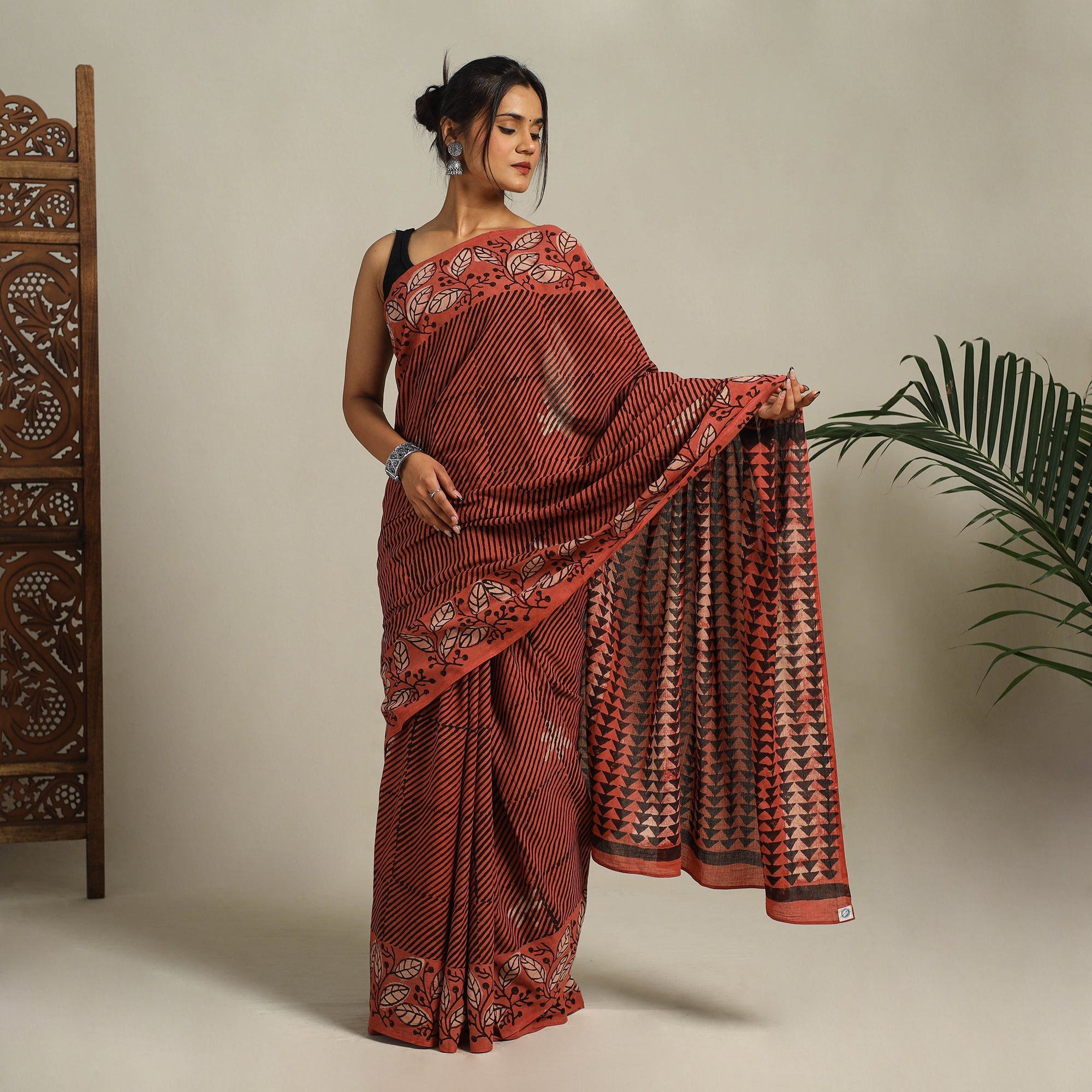 Handcrafted Red Bindaas art block print cotton saree, made for breathable comfort and everyday elegance. Naturally dyed and created by skilled artisans, it features intricate motifs that blend timeless tradition with a modern vibe. Whether you’re heading to a family get-together or enjoying a casual outing, this saree is a versatile essential that pairs heritage art with contemporary flair, fitting seamlessly into your daily wardrobe.