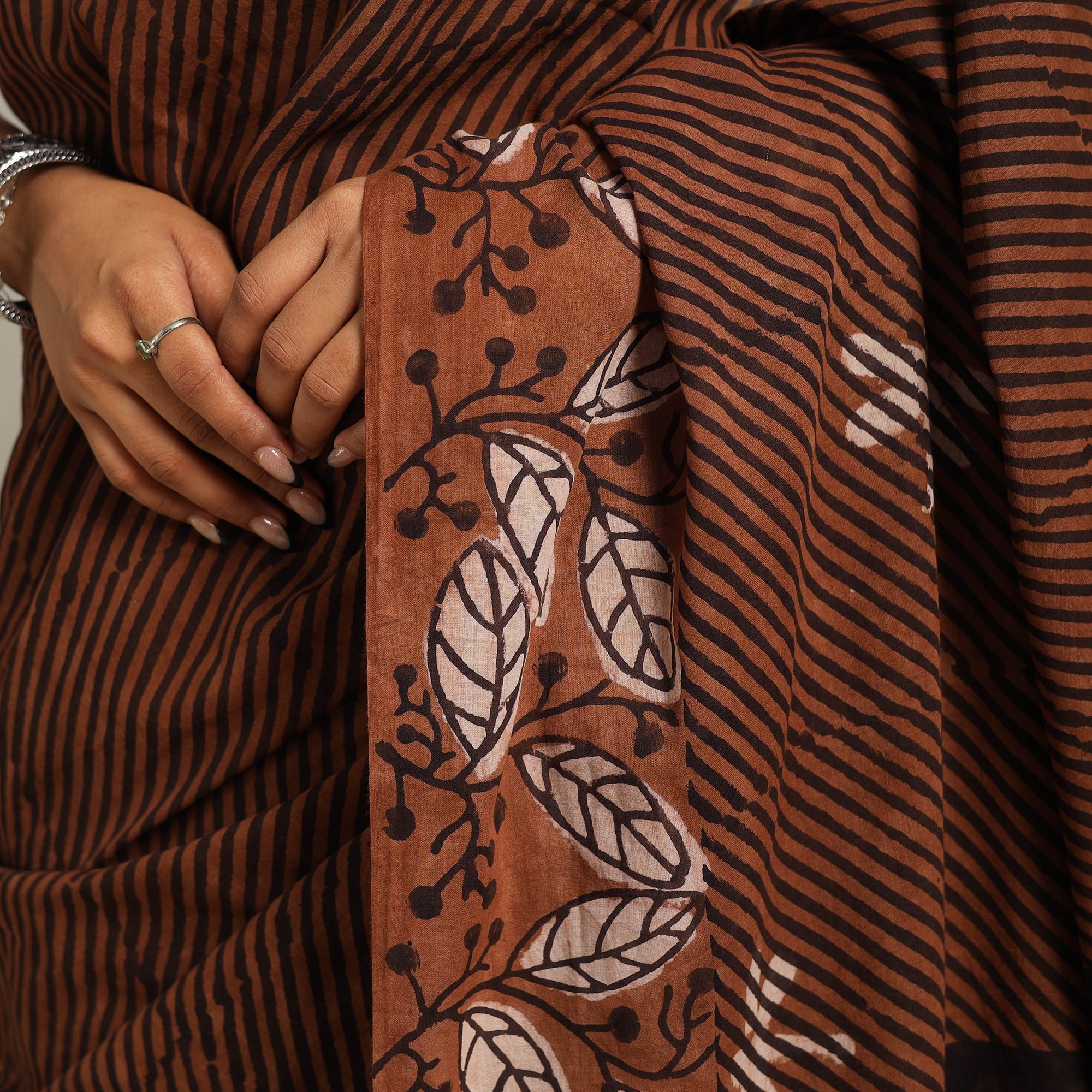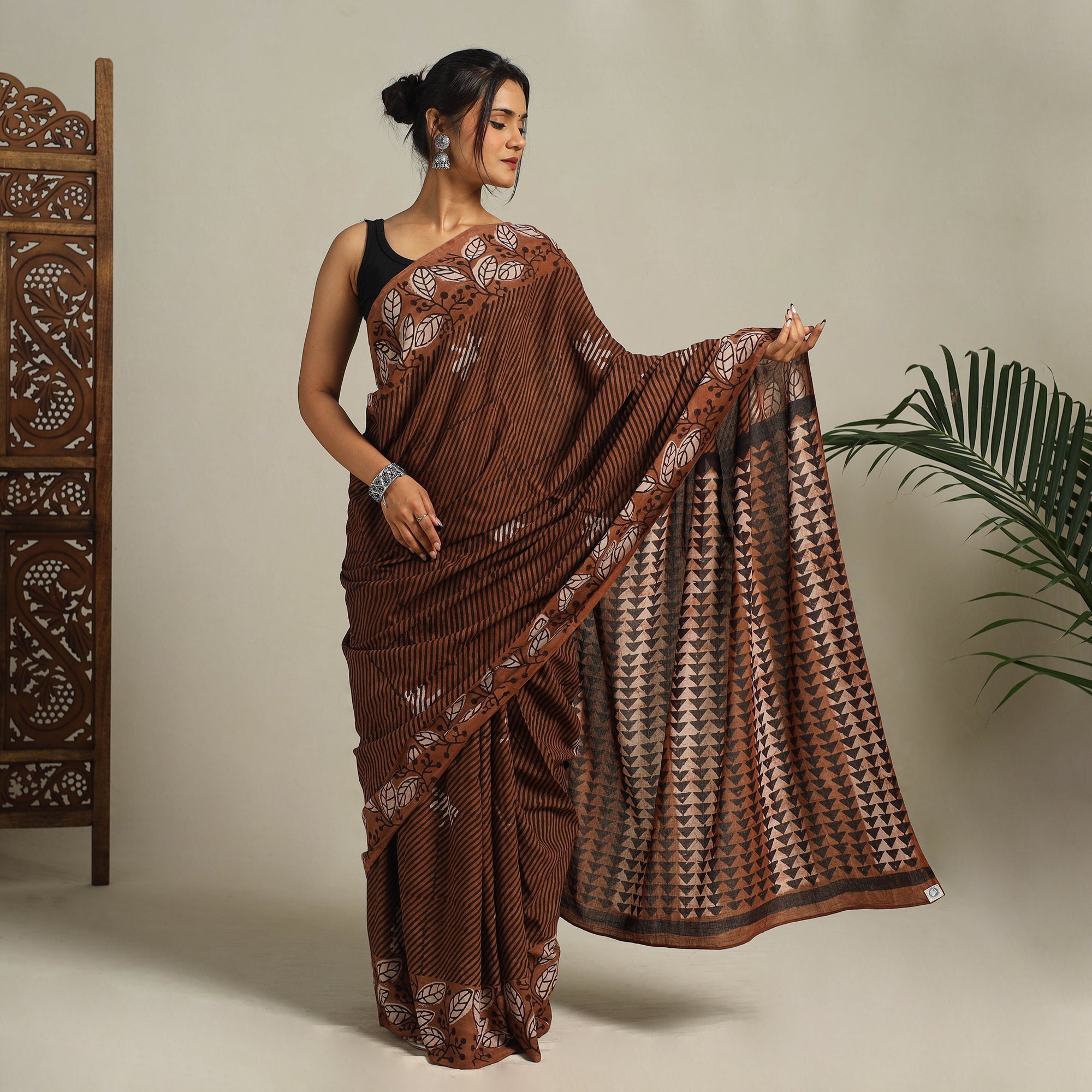 Handcrafted Brown Bindaas art block print cotton saree, made for breathable comfort and everyday elegance. Naturally dyed and created by skilled artisans, it features intricate motifs that blend timeless tradition with a modern vibe. Whether you’re heading to a family get-together or enjoying a casual outing, this saree is a versatile essential that pairs heritage art with contemporary flair, fitting seamlessly into your daily wardrobe.