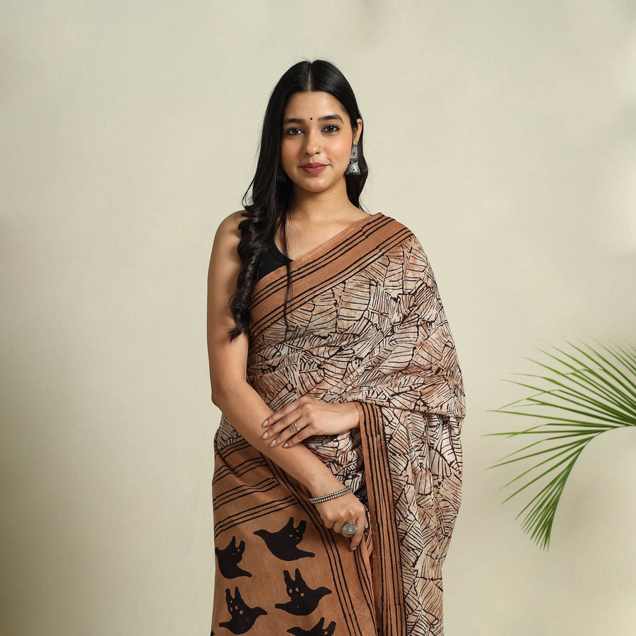 Immerse yourself in the vibrant charm of Rajasthan with this bindaas art hand brown block printed saree, made from pure cotton and naturally dyed for an authentic appeal. Designed by fourth-generation artisans, it showcases intricate patterns that celebrate tradition while offering contemporary elegance. The soft fabric and artistic detailing make it a must-have for those who love a blend of heritage and modern fashion perfect for any celebration or casual chic look.