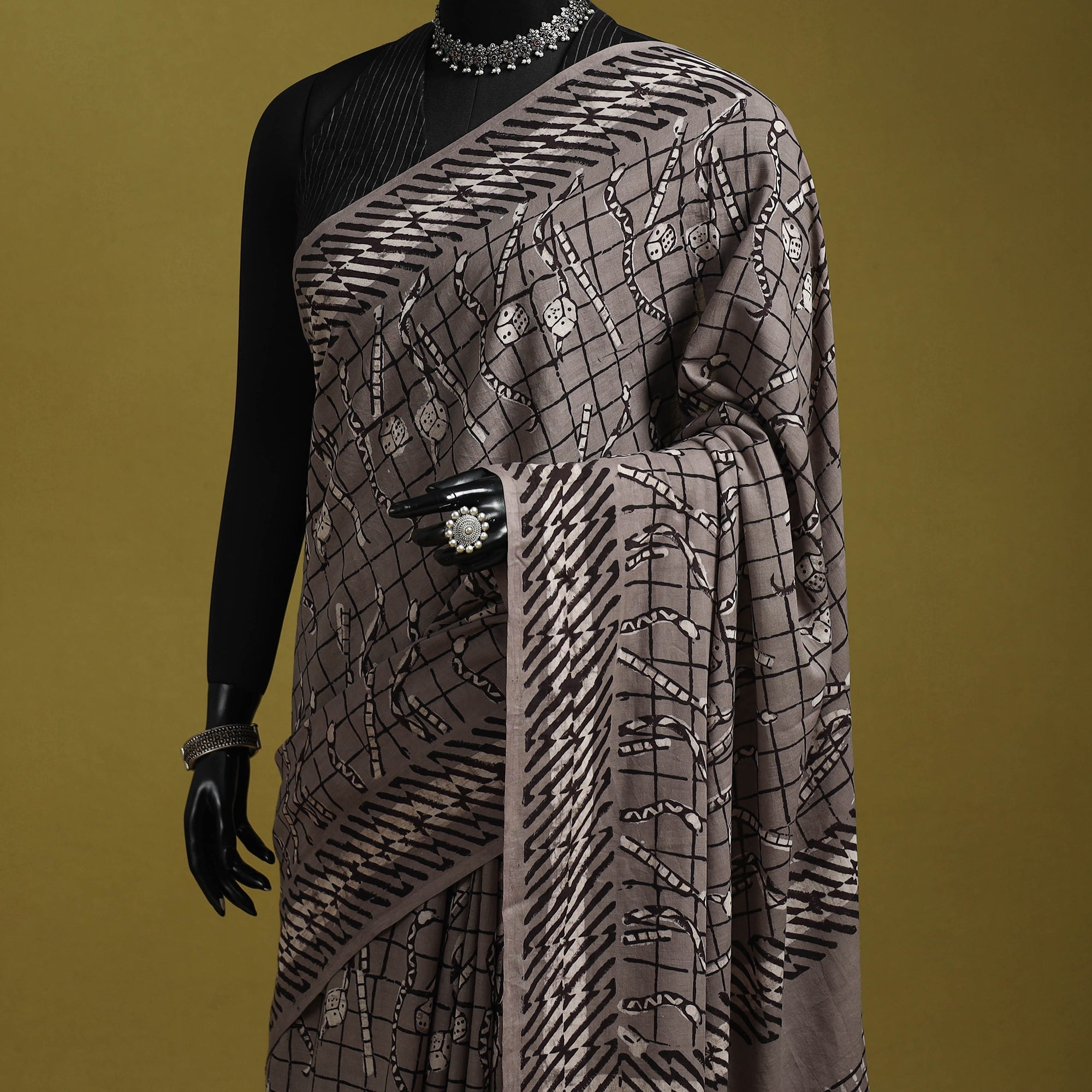Grey - Bindaas Art Natural Dyed Cotton Block Print Saree 24