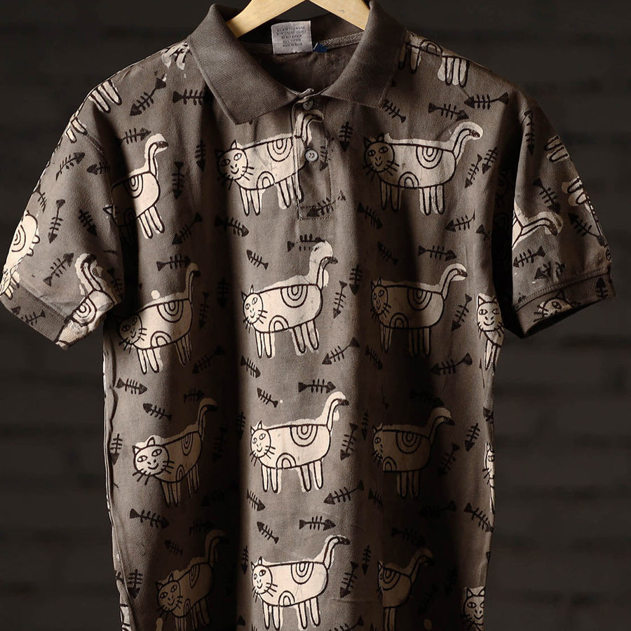 Celebrate artisanal heritage with this bindaas block art printed cotton unisex polo collar t-shirt, crafted from natural dyed cotton using traditional techniques from Rajasthan. To make these t-shirts it takes: a hundred year old technique, 15-22 processes, 25-40 pairs of hands, 65 hours spread over, at least 12 days, a lot of sun and sand. Perfect for casual outings, relaxed weekends.