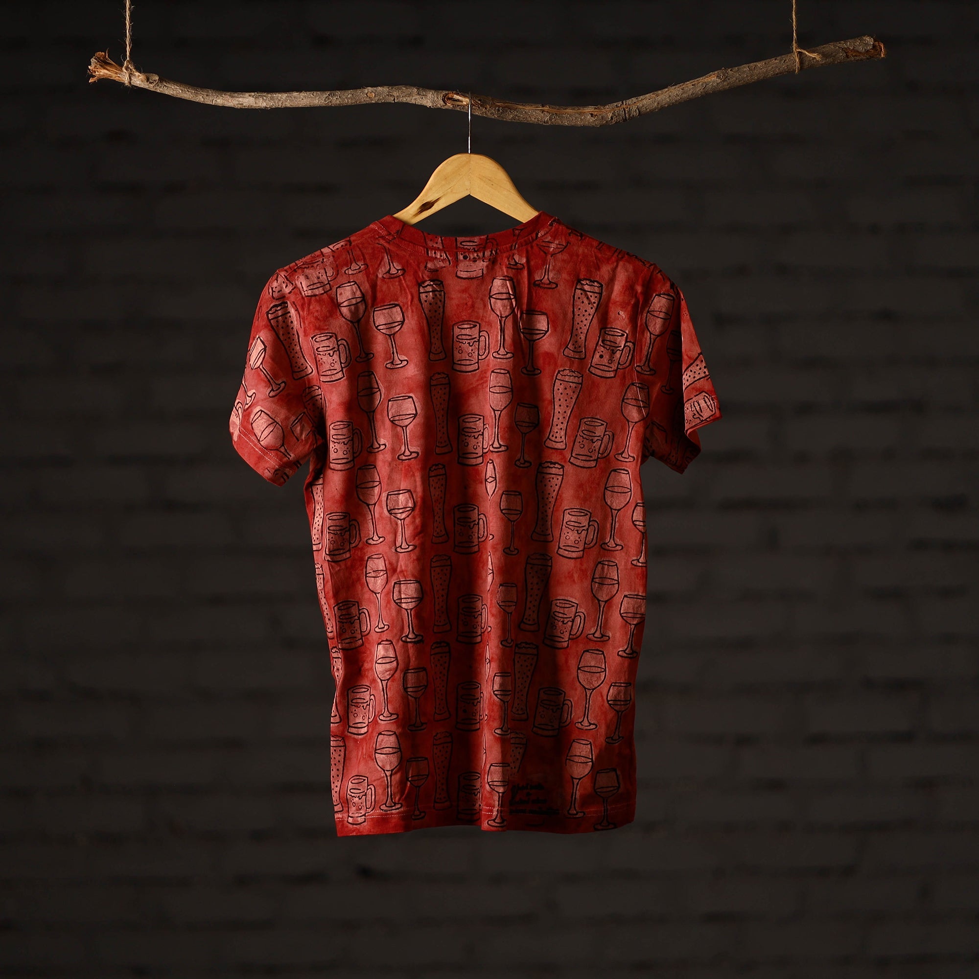 Celebrate artisanal heritage with this bindaas block art printed cotton unisex round neck t-shirt, crafted from natural dyed cotton using traditional techniques from Rajasthan. To make these t-shirts it takes: a hundred year old technique, 15-22 processes, 25-40 pairs of hands, 65 hours spread over, at least 12 days, a lot of sun and sand. Perfect for casual outings, relaxed weekends.
