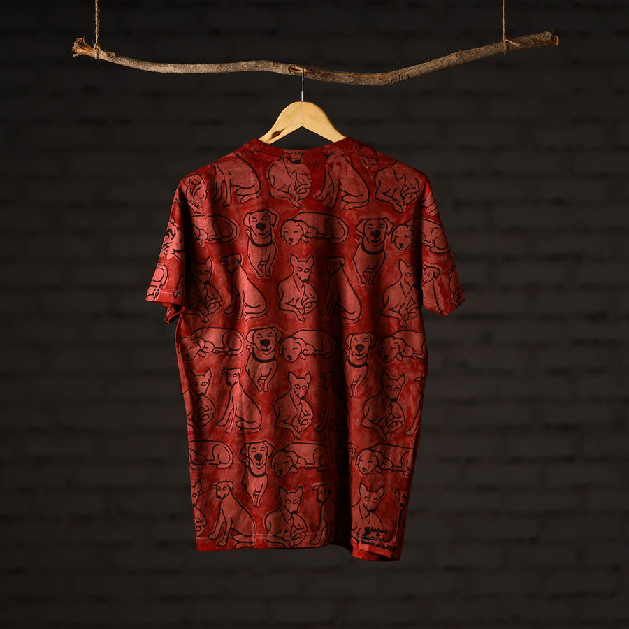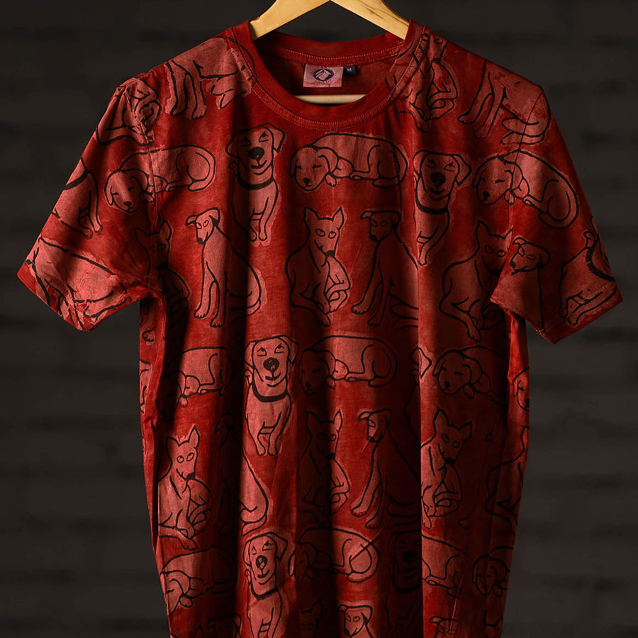 Celebrate artisanal heritage with this bindaas block art printed cotton unisex round neck t-shirt, crafted from natural dyed cotton using traditional techniques from Rajasthan. To make these t-shirts it takes: a hundred year old technique, 15-22 processes, 25-40 pairs of hands, 65 hours spread over, at least 12 days, a lot of sun and sand. Perfect for casual outings, relaxed weekends.