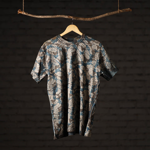 Celebrate artisanal heritage with this bindaas block art printed cotton unisex round neck t-shirt, crafted from natural dyed cotton using traditional techniques from Rajasthan. To make these t-shirts it takes: a hundred year old technique, 15-22 processes, 25-40 pairs of hands, 65 hours spread over, at least 12 days, a lot of sun and sand. Perfect for casual outings, relaxed weekends.