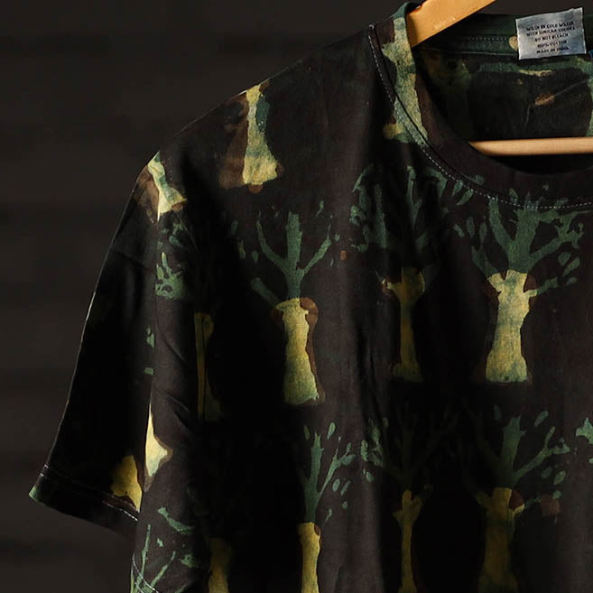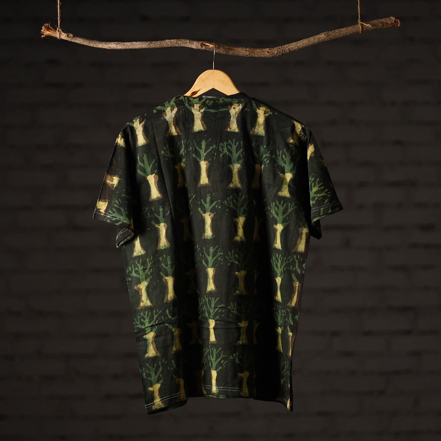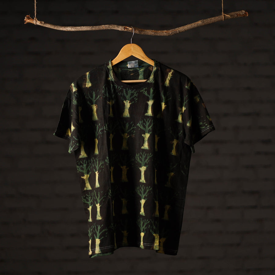 Celebrate artisanal heritage with this bindaas block art printed cotton unisex round neck t-shirt, crafted from natural dyed cotton using traditional techniques from Rajasthan. To make these t-shirts it takes: a hundred year old technique, 15-22 processes, 25-40 pairs of hands, 65 hours spread over, at least 12 days, a lot of sun and sand. Perfect for casual outings, relaxed weekends.