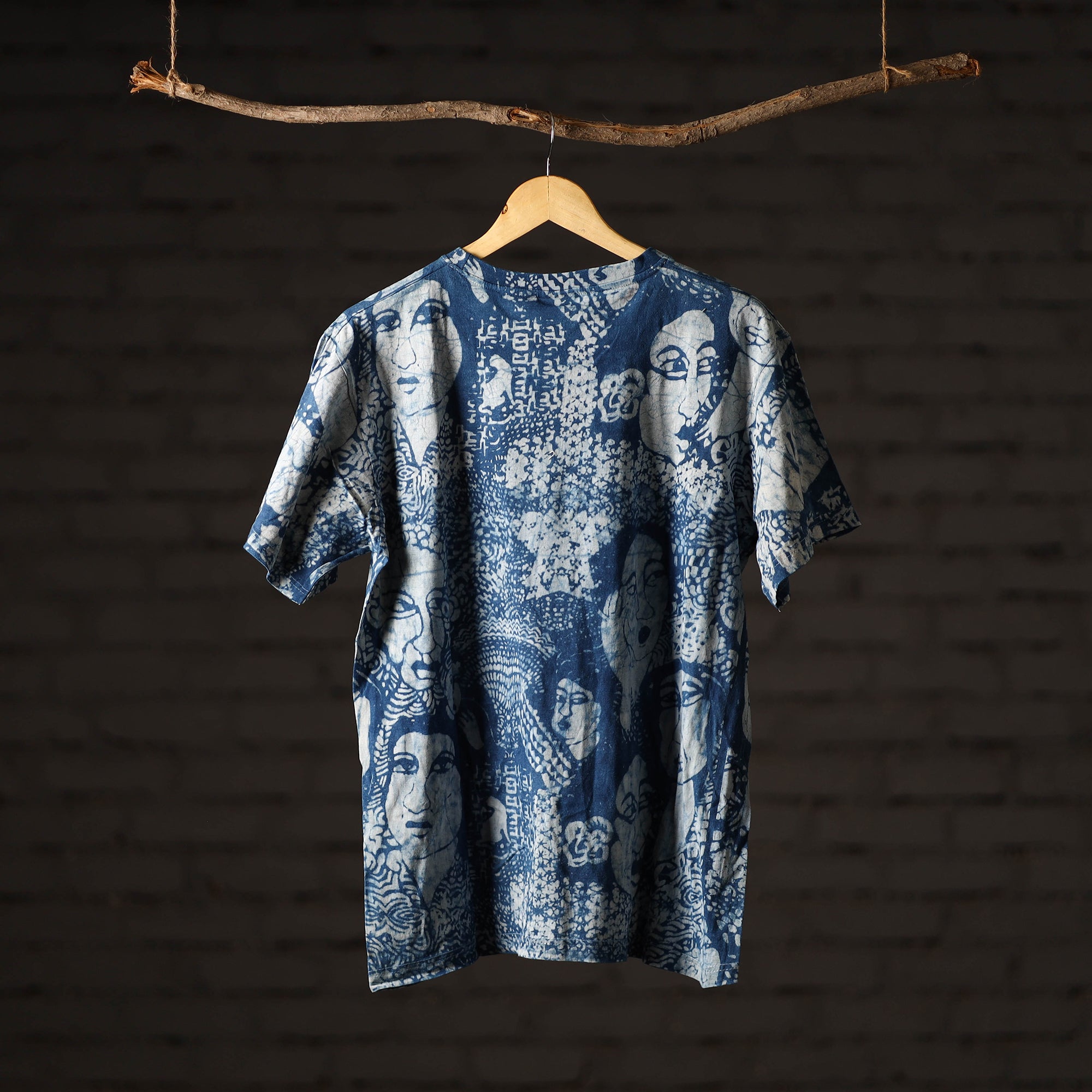 Celebrate artisanal heritage with this bindaas block art printed cotton unisex round neck t-shirt, crafted from natural dyed cotton using traditional techniques from Rajasthan. To make these t-shirts it takes: a hundred year old technique, 15-22 processes, 25-40 pairs of hands, 65 hours spread over, at least 12 days, a lot of sun and sand. Perfect for casual outings, relaxed weekends.