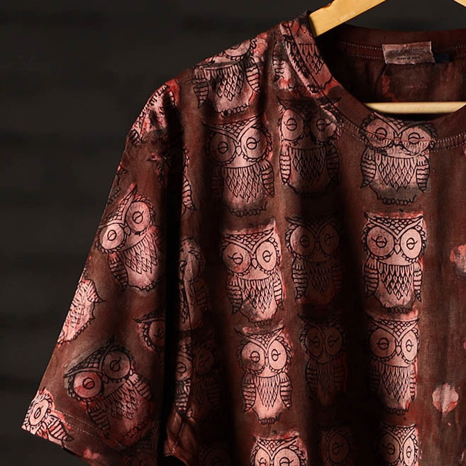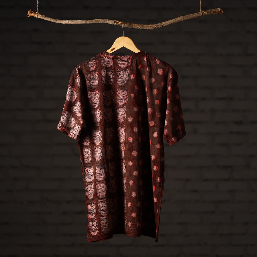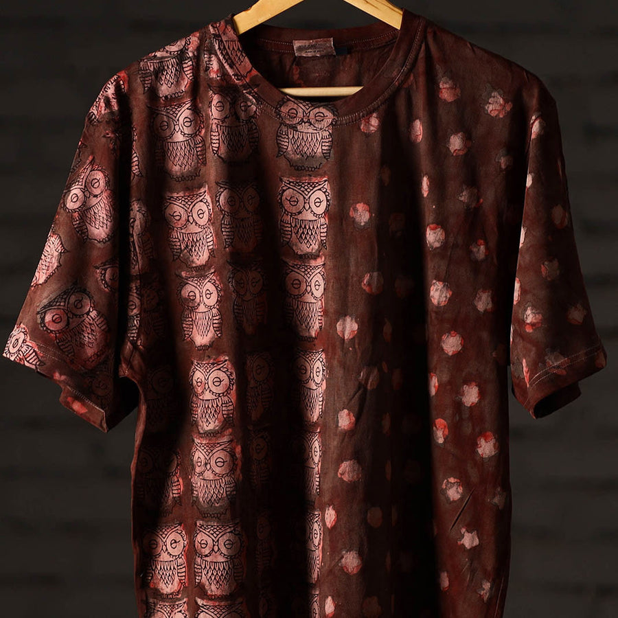 Celebrate artisanal heritage with this bindaas block art printed cotton unisex round neck t-shirt, crafted from natural dyed cotton using traditional techniques from Rajasthan. To make these t-shirts it takes: a hundred year old technique, 15-22 processes, 25-40 pairs of hands, 65 hours spread over, at least 12 days, a lot of sun and sand. Perfect for casual outings, relaxed weekends.