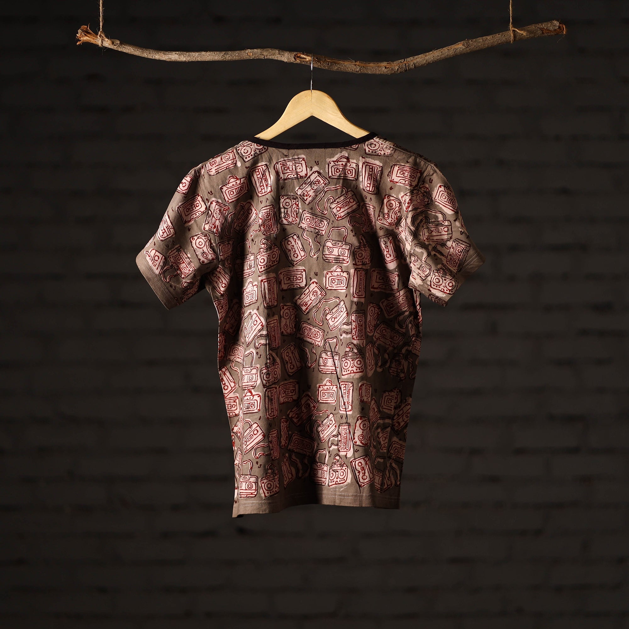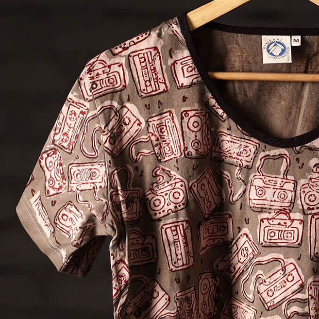 Celebrate artisanal heritage with this bindaas block art printed cotton women round neck t-shirt, crafted from natural dyed cotton using traditional techniques from Rajasthan. To make these t-shirts it takes: a hundred year old technique, 15-22 processes, 25-40 pairs of hands, 65 hours spread over, at least 12 days, a lot of sun and sand. Perfect for casual outings, relaxed weekends.