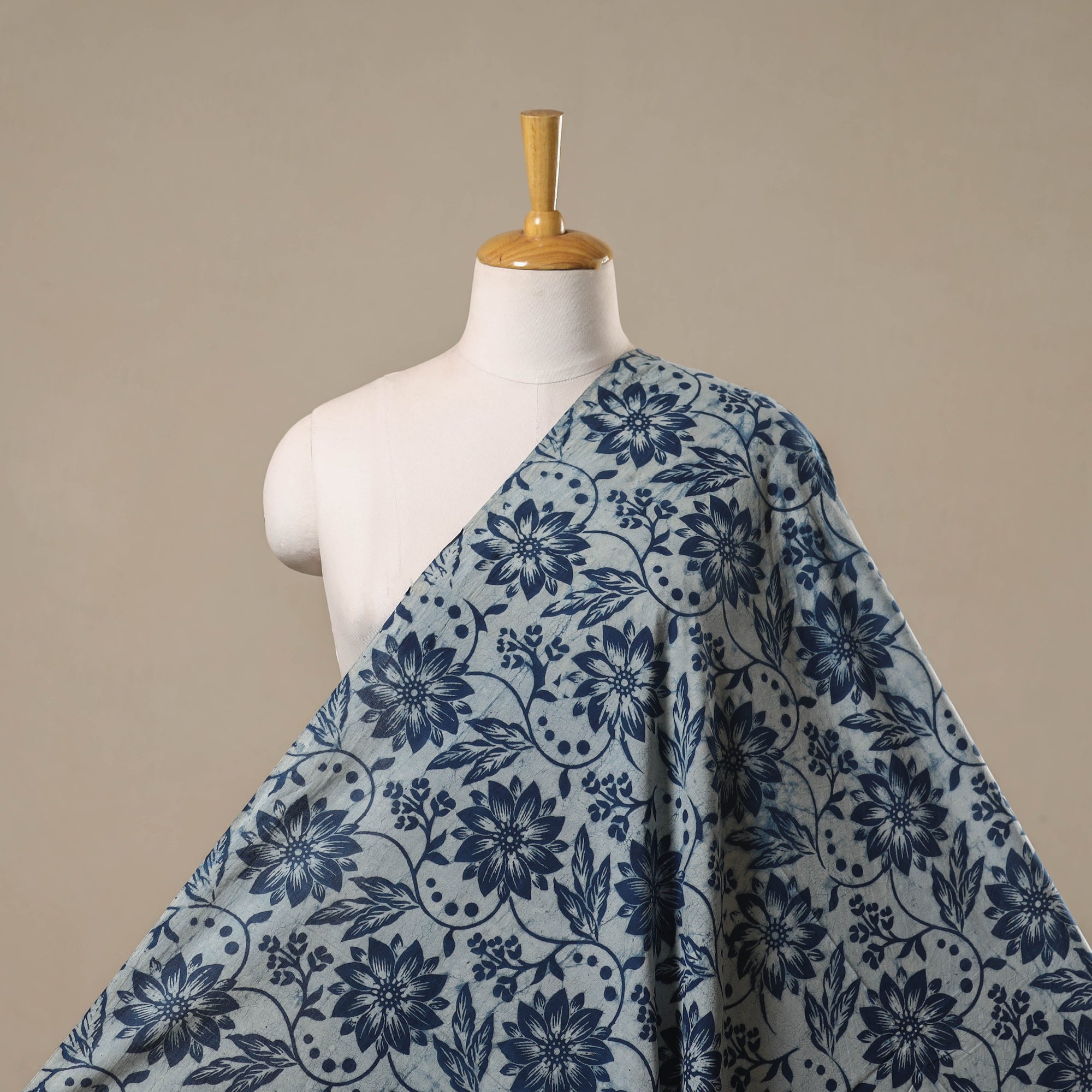 Blue bindaas block print cotton fabric is made through traditional hand-printing in Kaladera, Rajasthan. Skilled artisans create the designs using hand-carved wooden blocks and natural dyes. Soft, breathable and easy to stitch, it’s a versatile choice for kurtas, dresses, tunics or home decor.